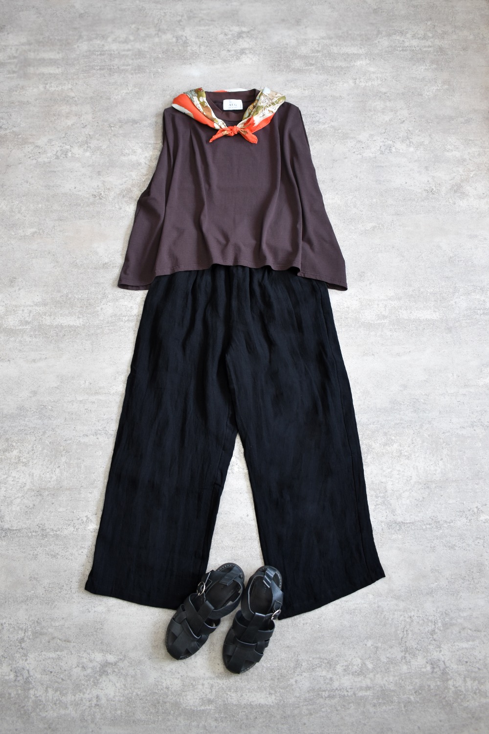リネン特有の上品な光沢感があり、大人の抜け感あるスタイルに。