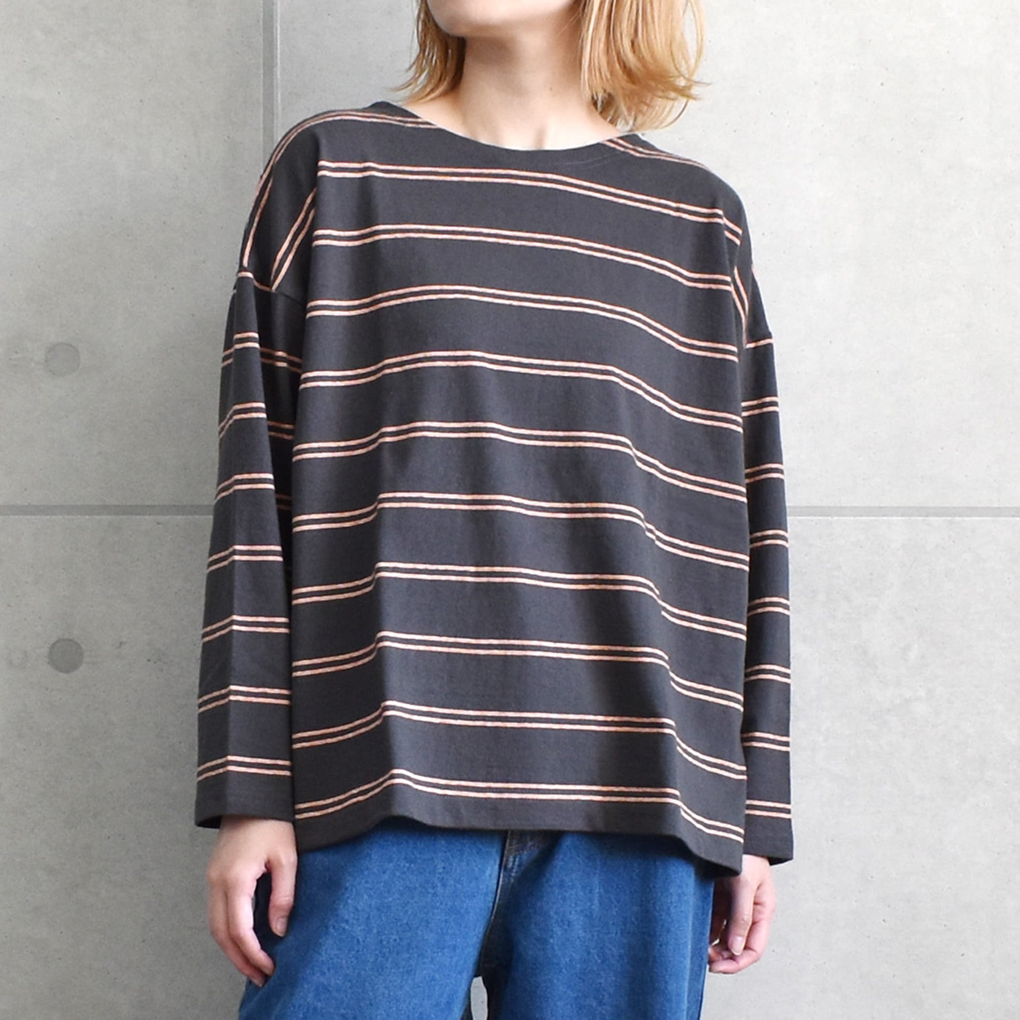 A.U.G relaxing ビンテージボーダーワイドボートネックTee /853402