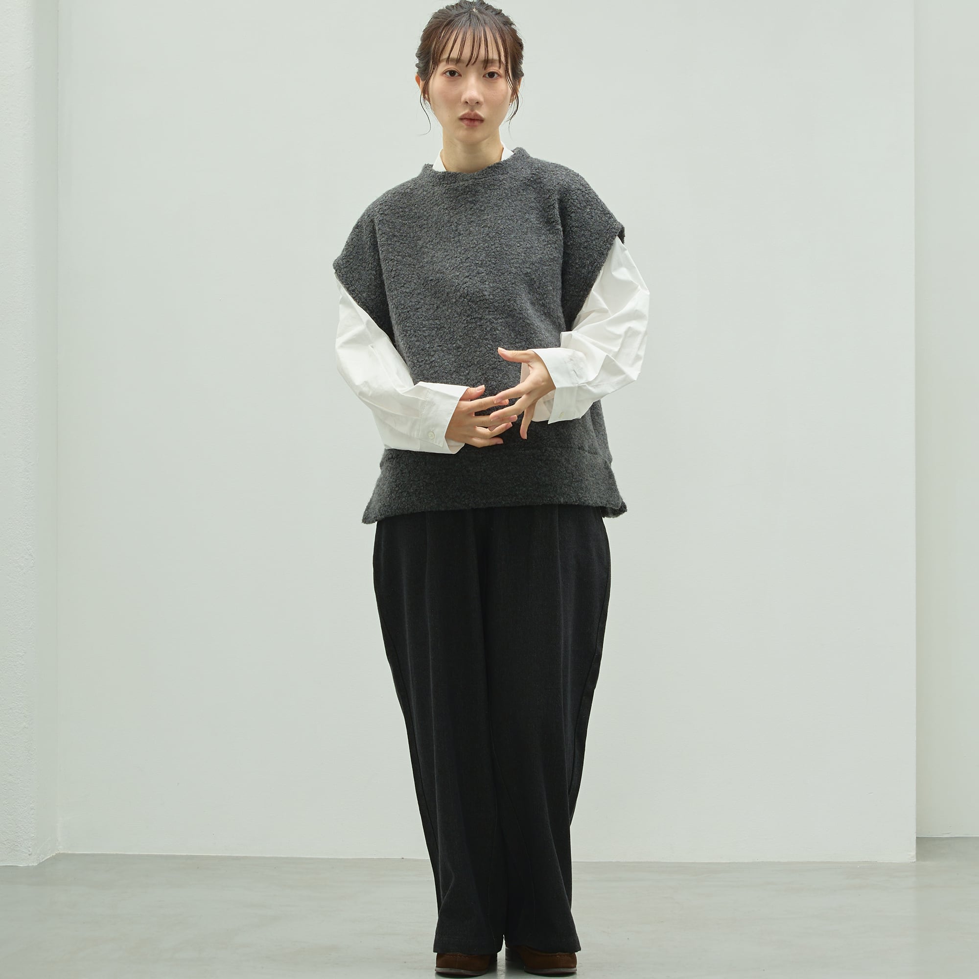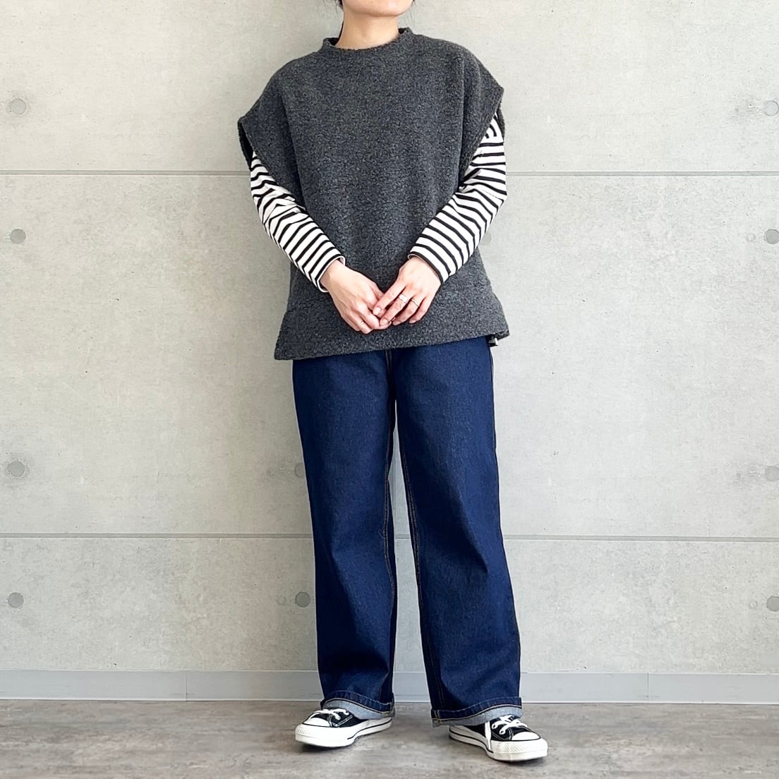 インナーを選ばず、シャツやカットソー、ワンピースなどとも好相性。
