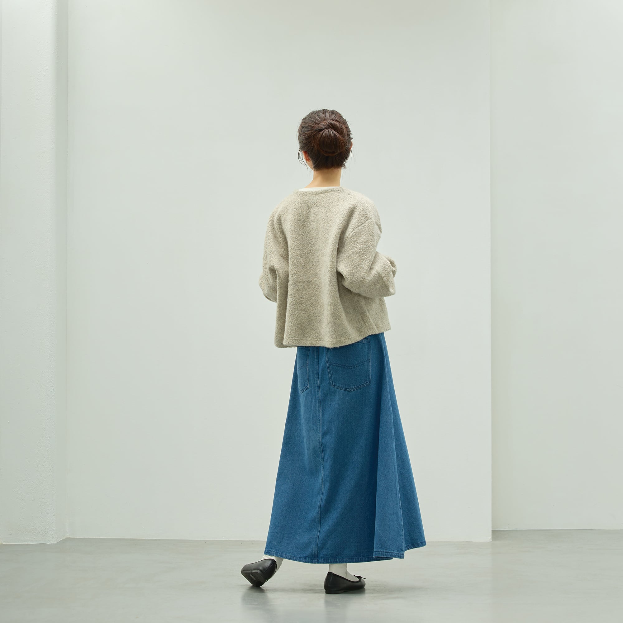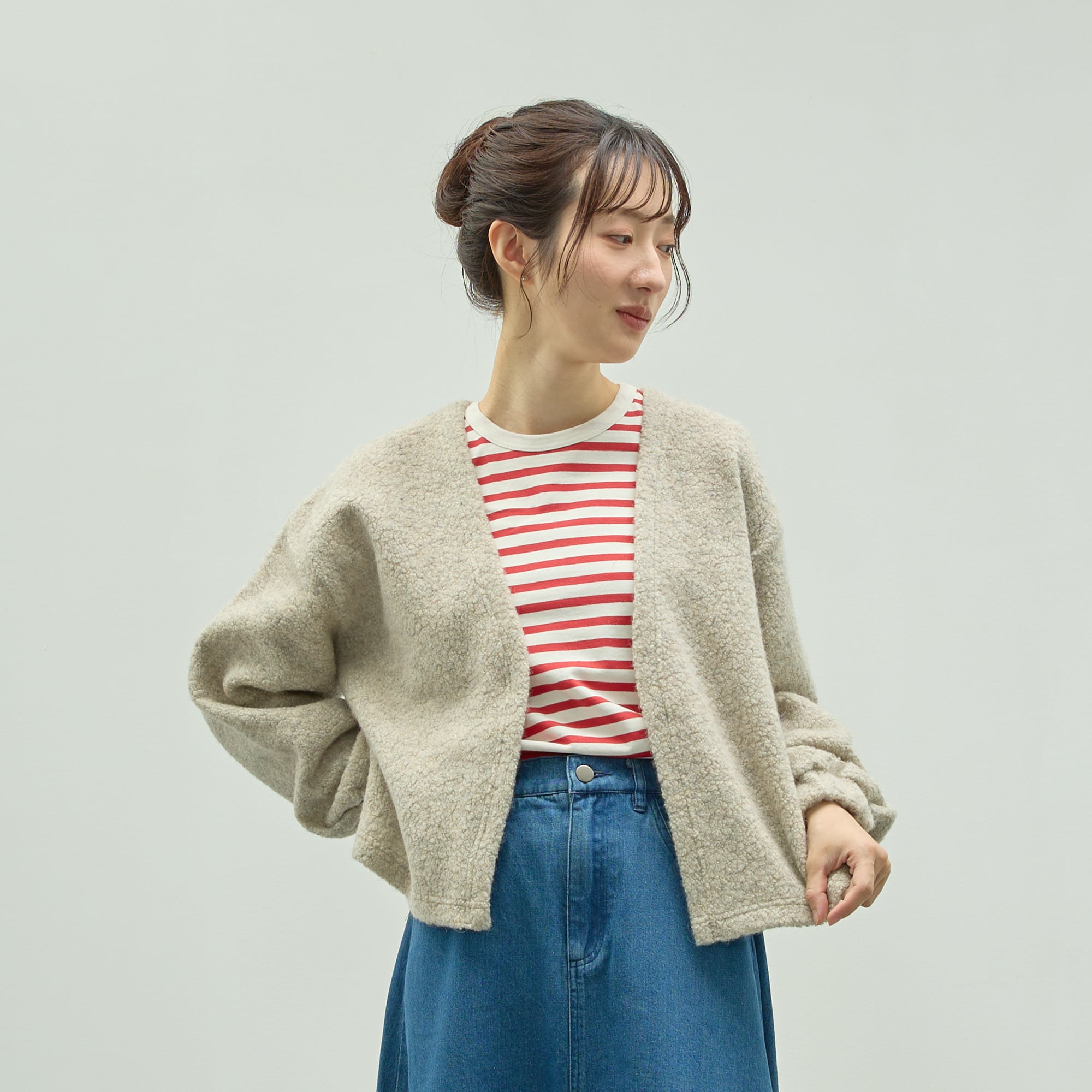 袖口にほどよいボリュームを持たせた、気軽に羽織れる“着流しカーデ”。