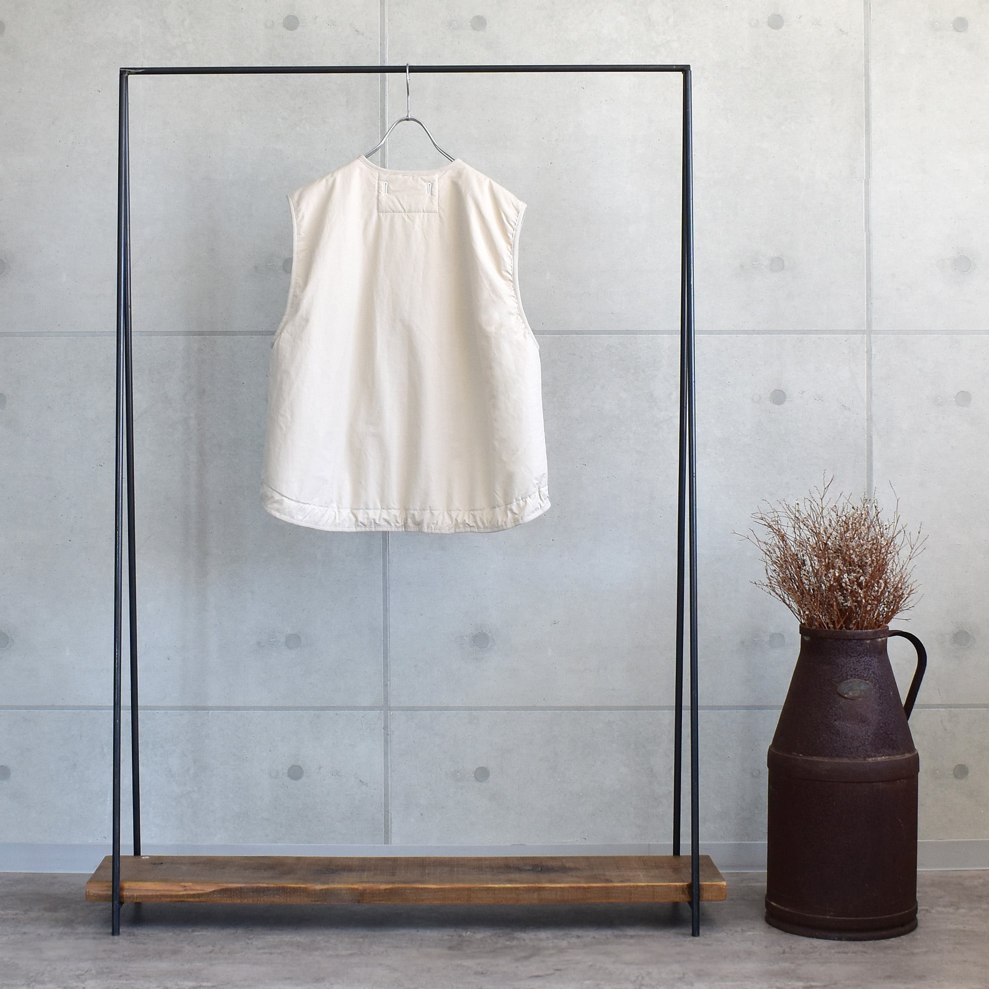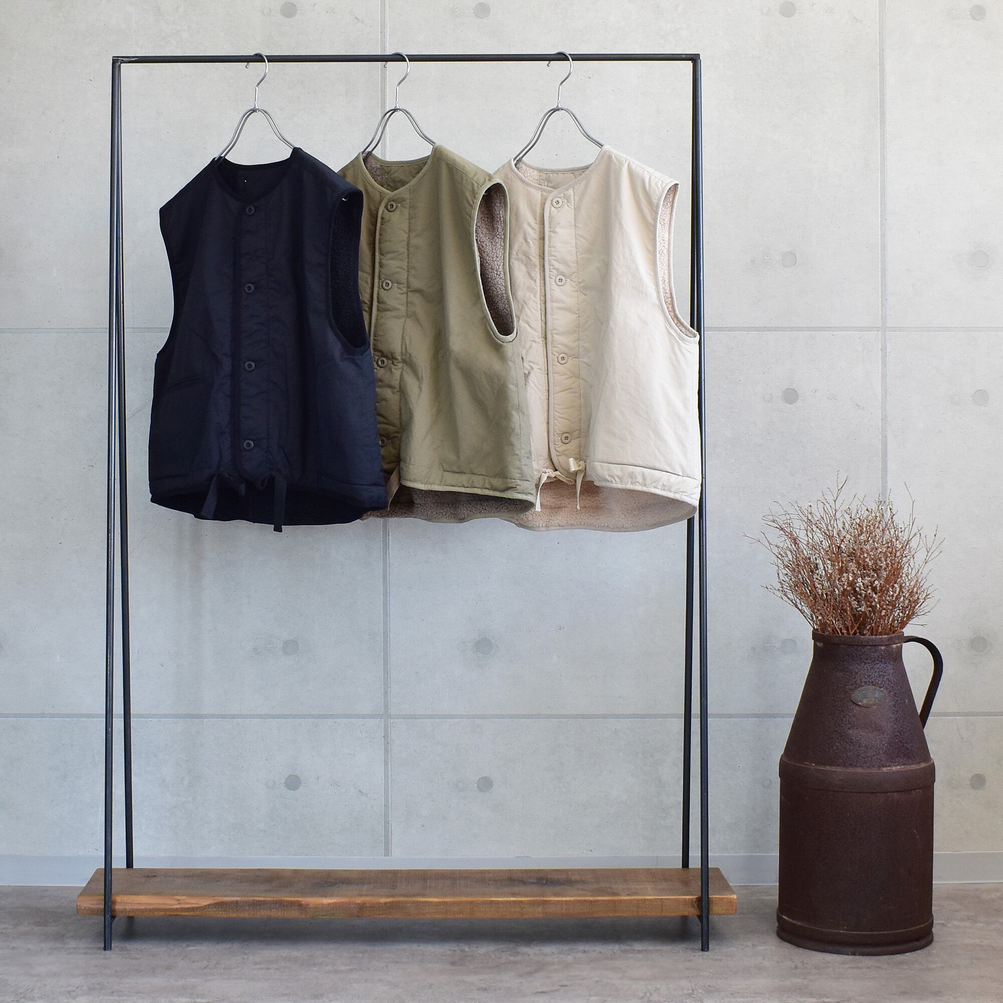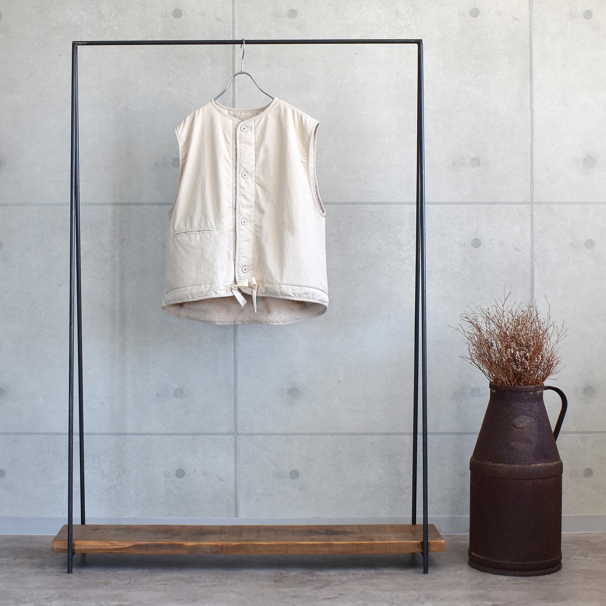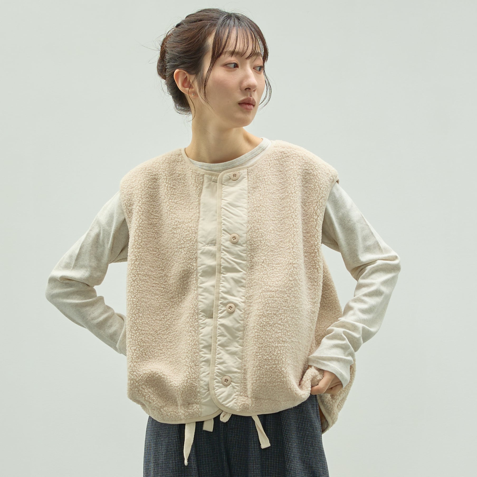 軽やかで上品な質感のコットンナイロンと、やわらかな肌ざわりのボアを組み合わせたリバーシブルベスト。