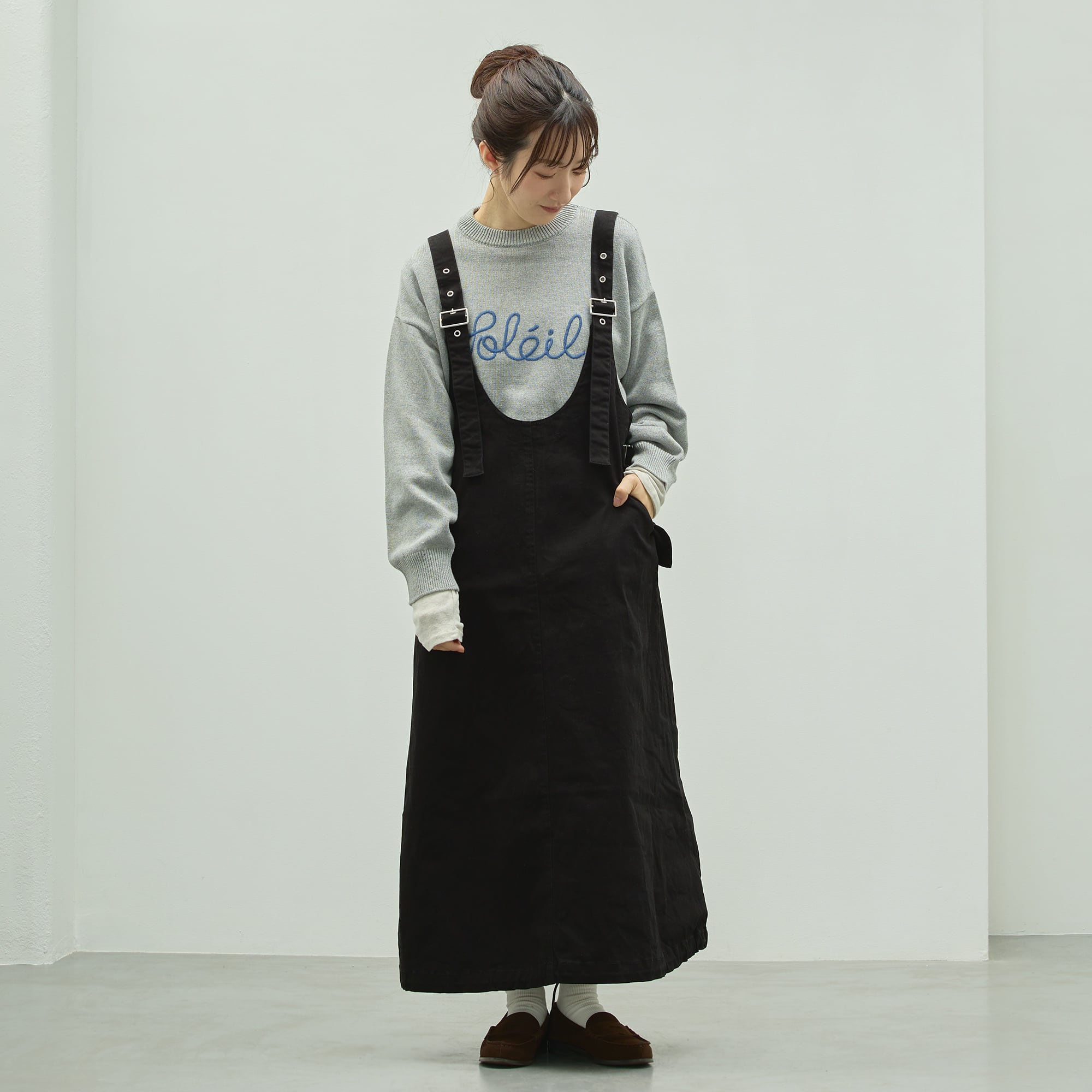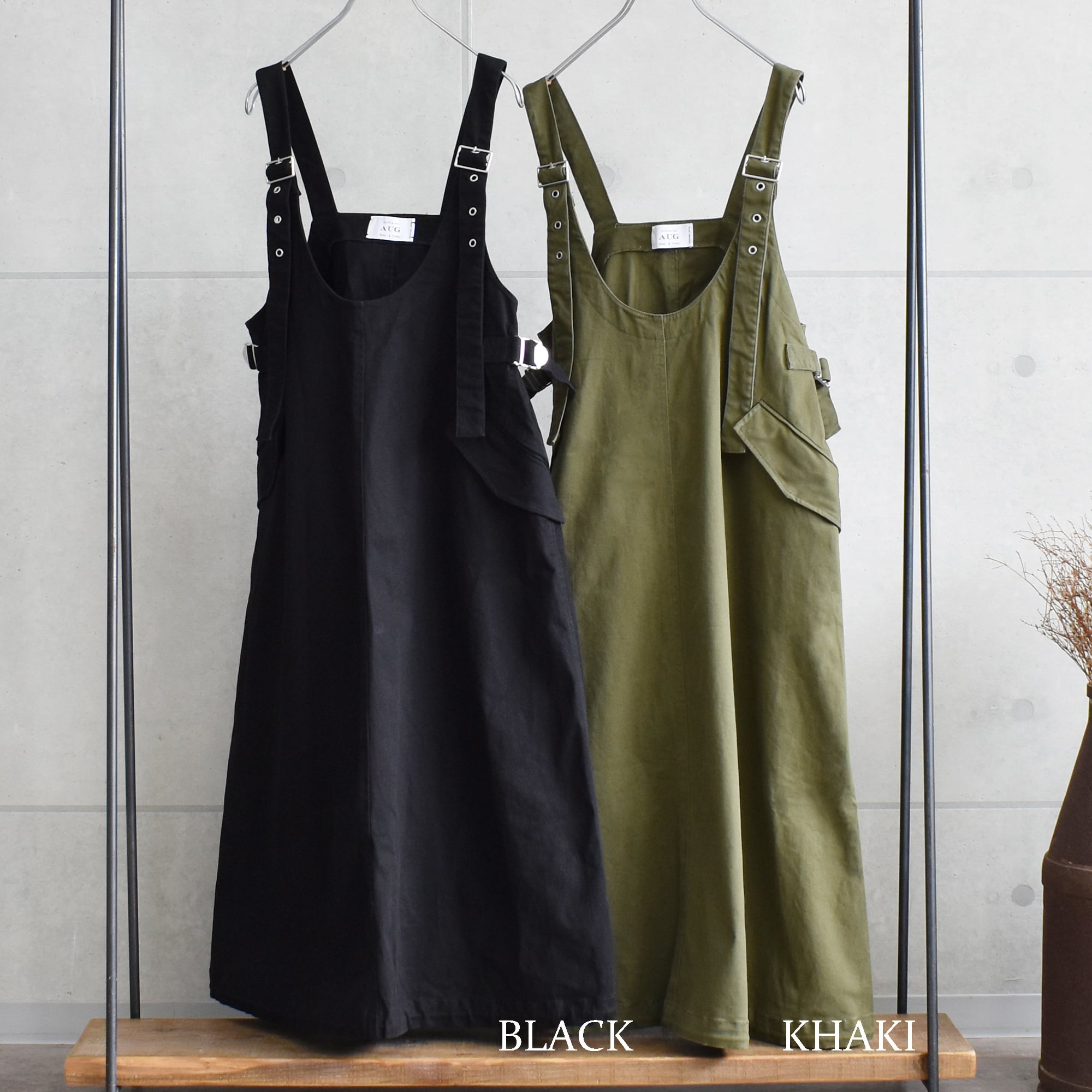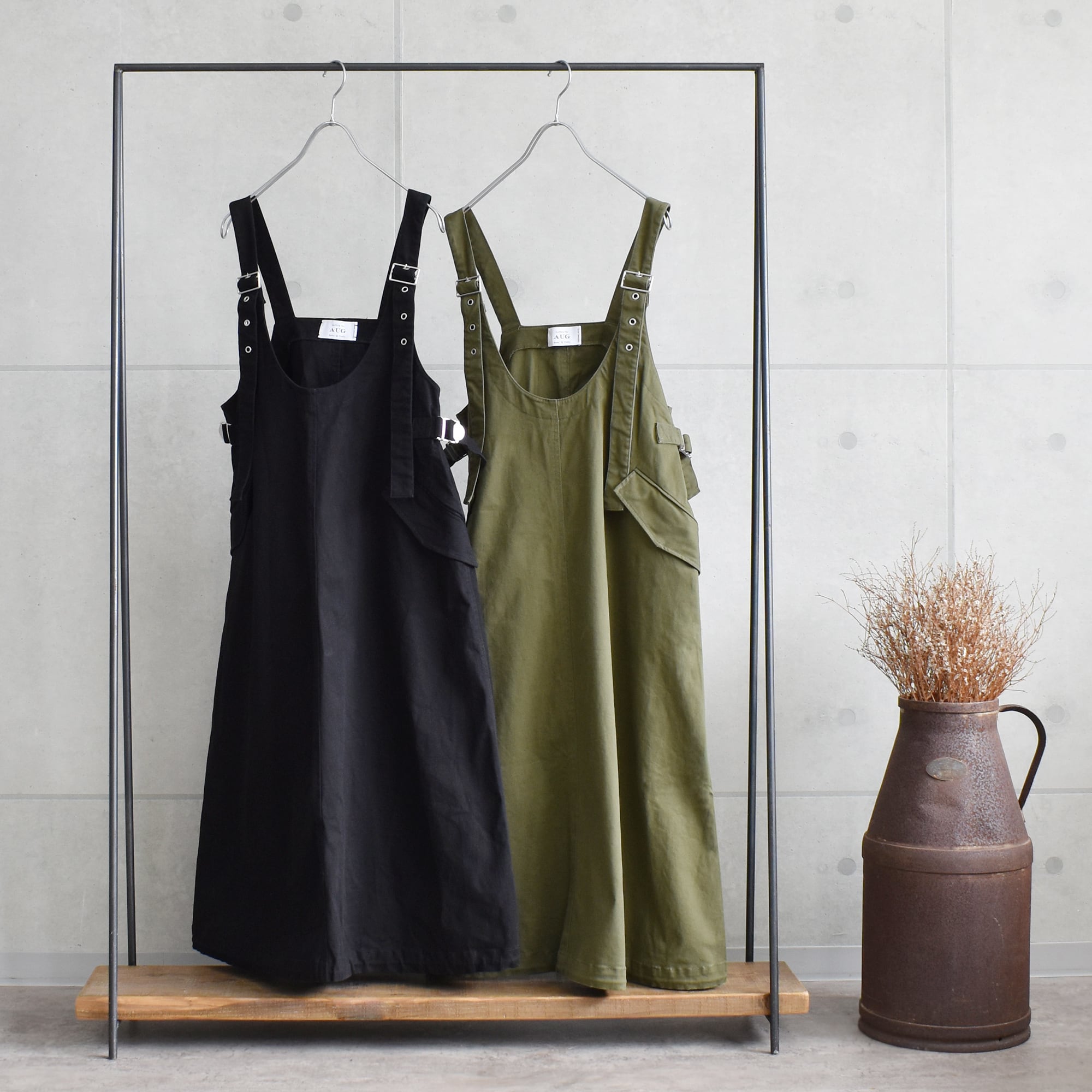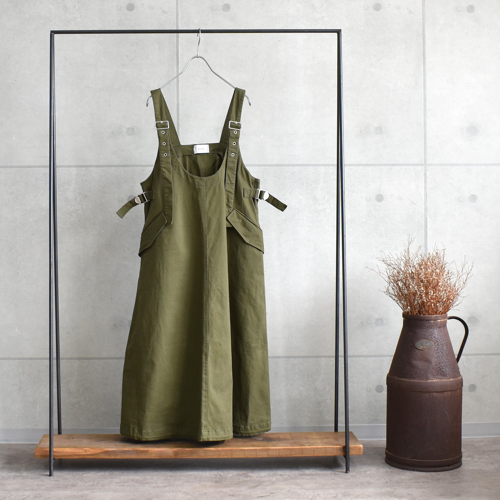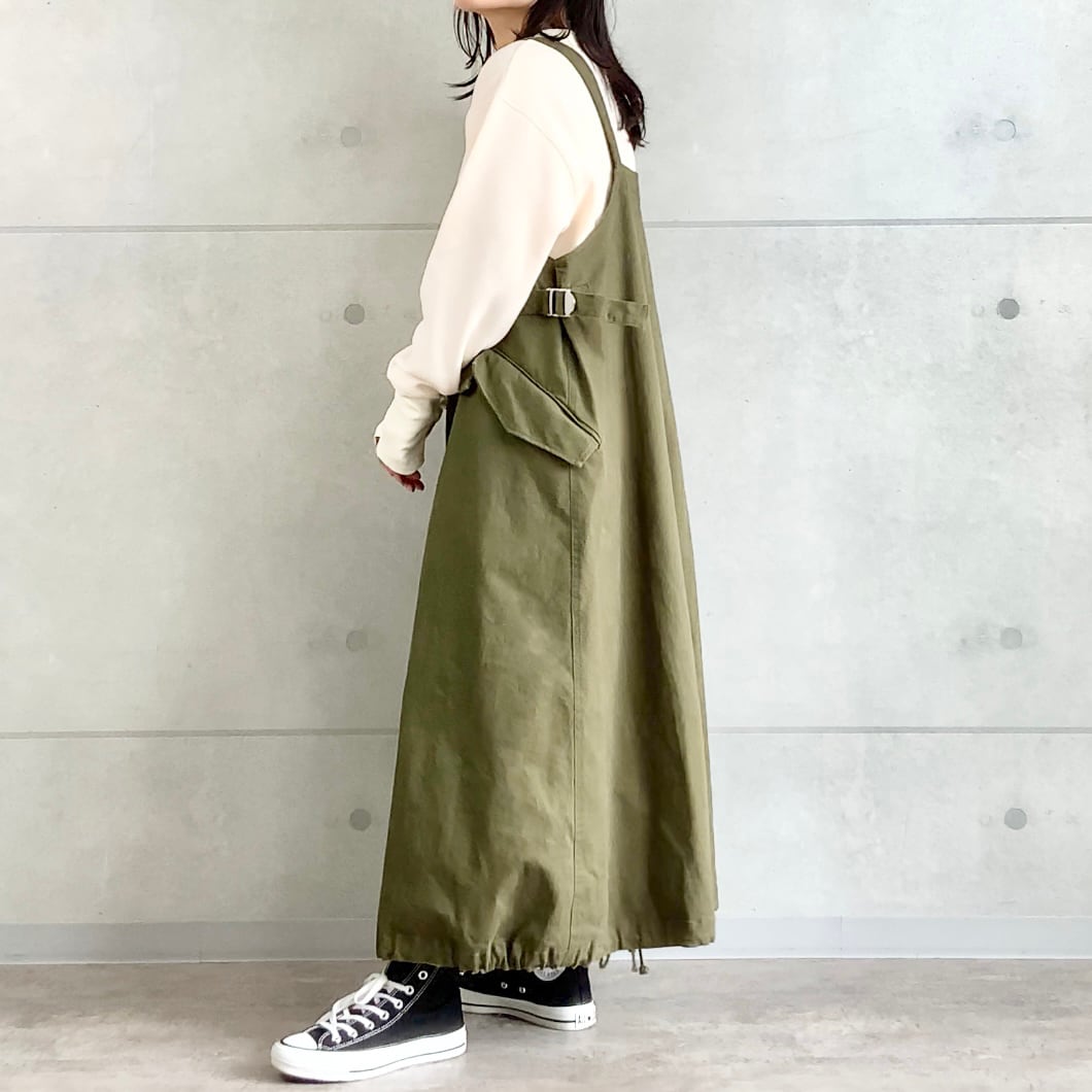 深めのUネックで抜け感を加えた、ミリタリーテイストのジャンスカです。