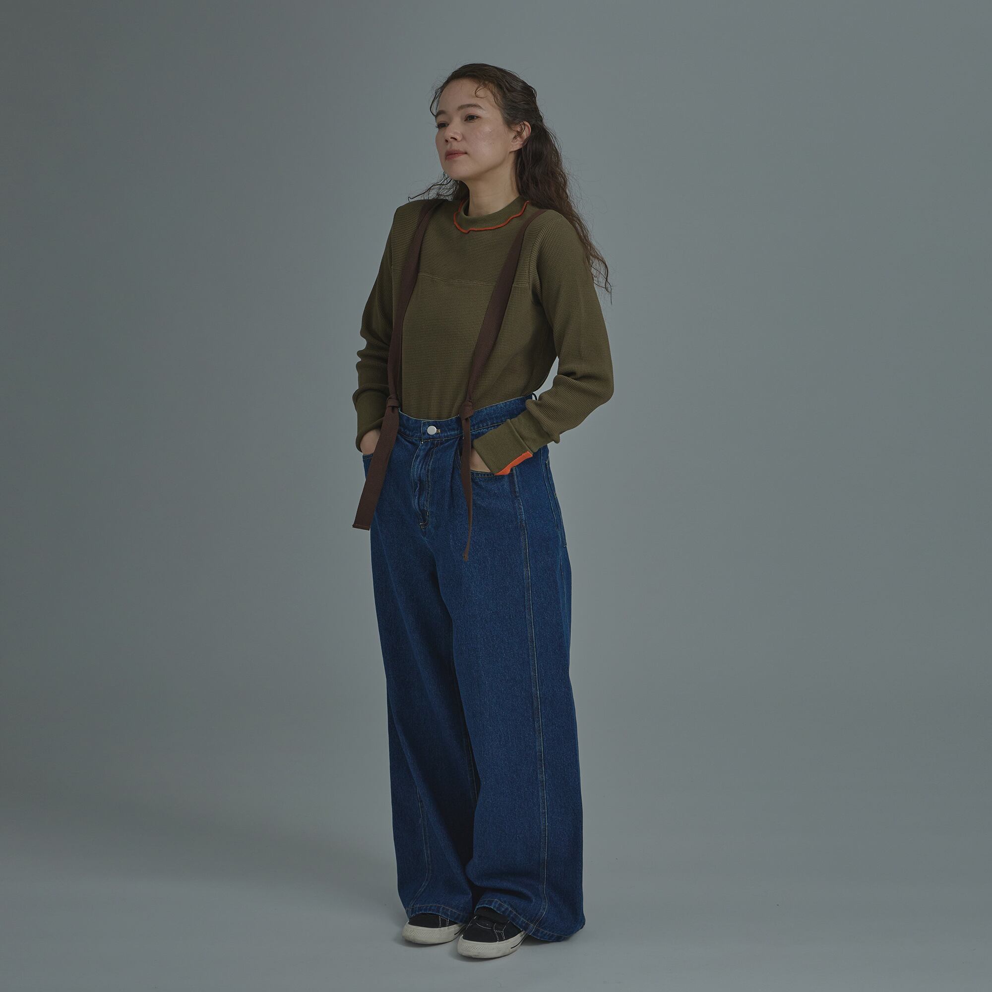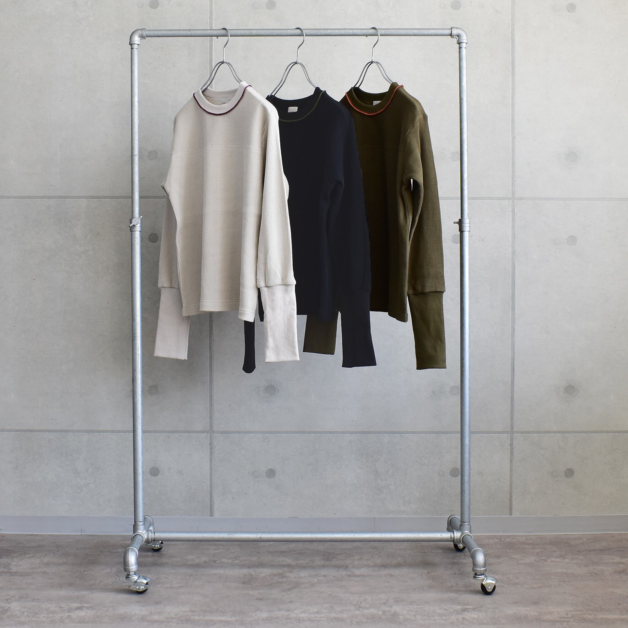 長めのリブは折り返すと配色テープが見える、遊び心のあるデザインです。