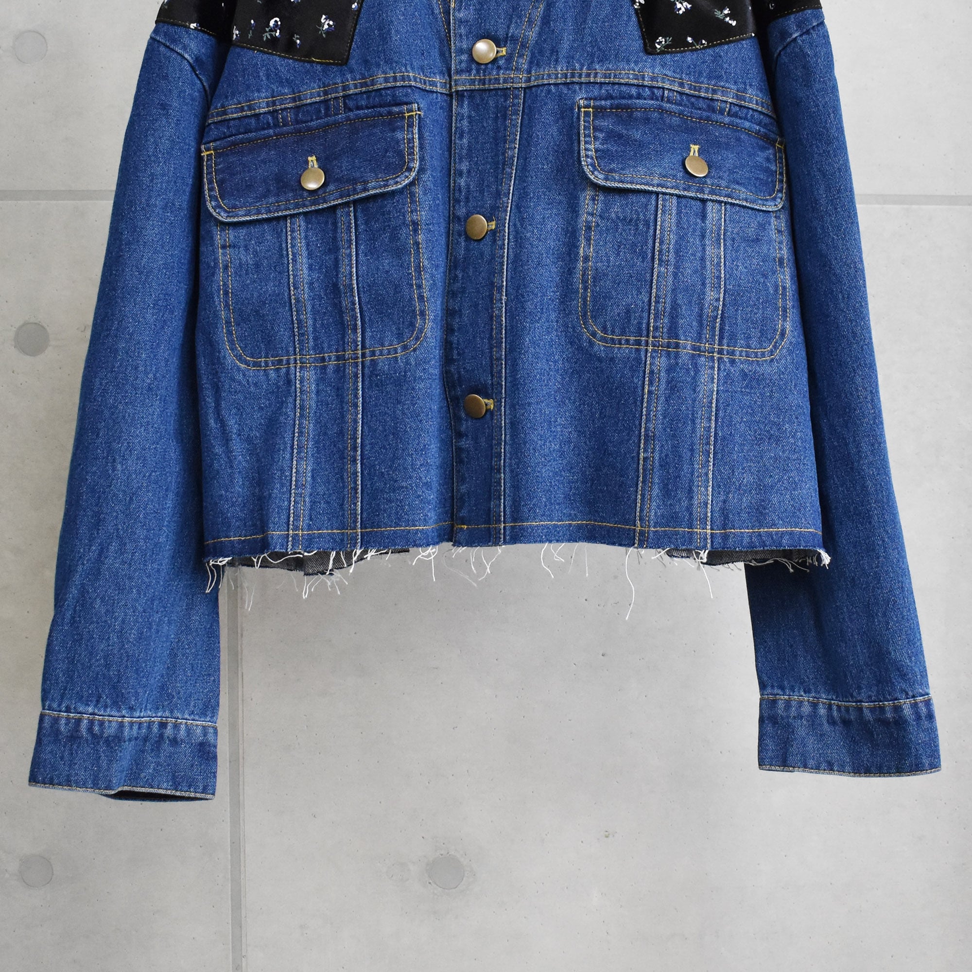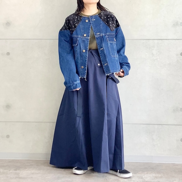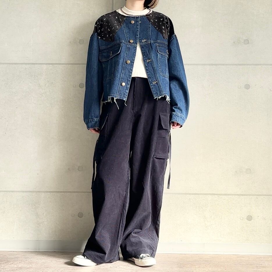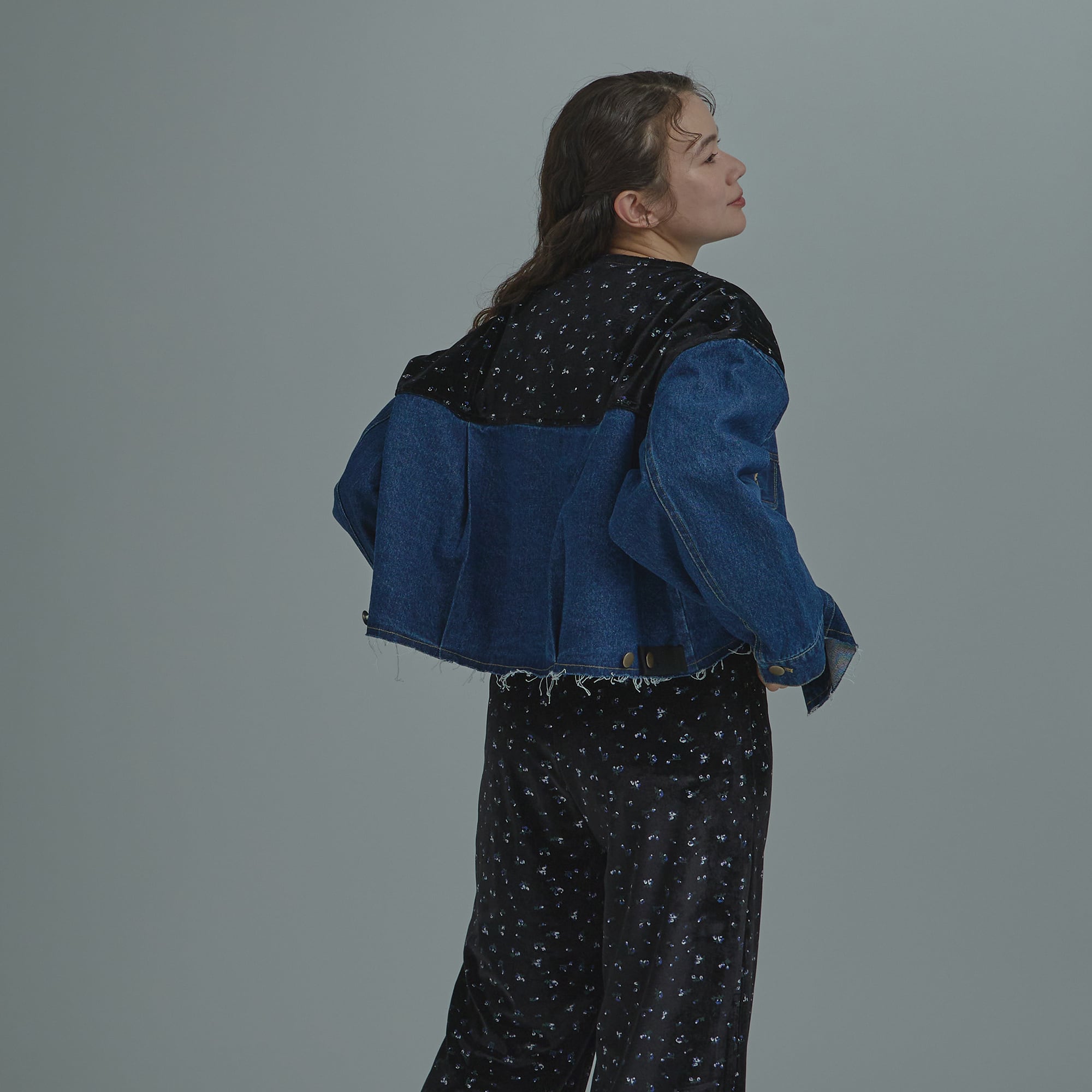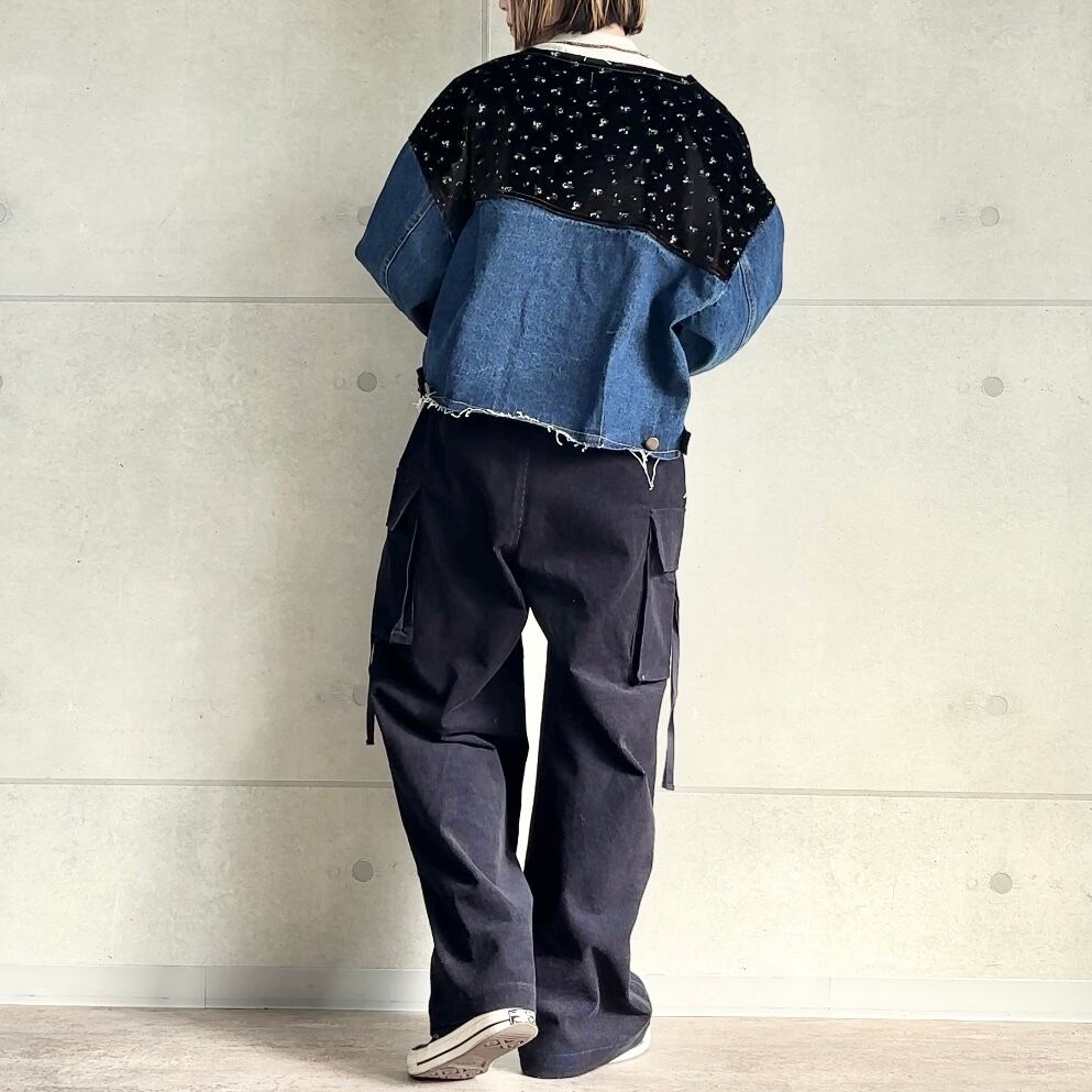 ベロアとデニムをドッキングし、リメイク風に仕上げたGジャン。