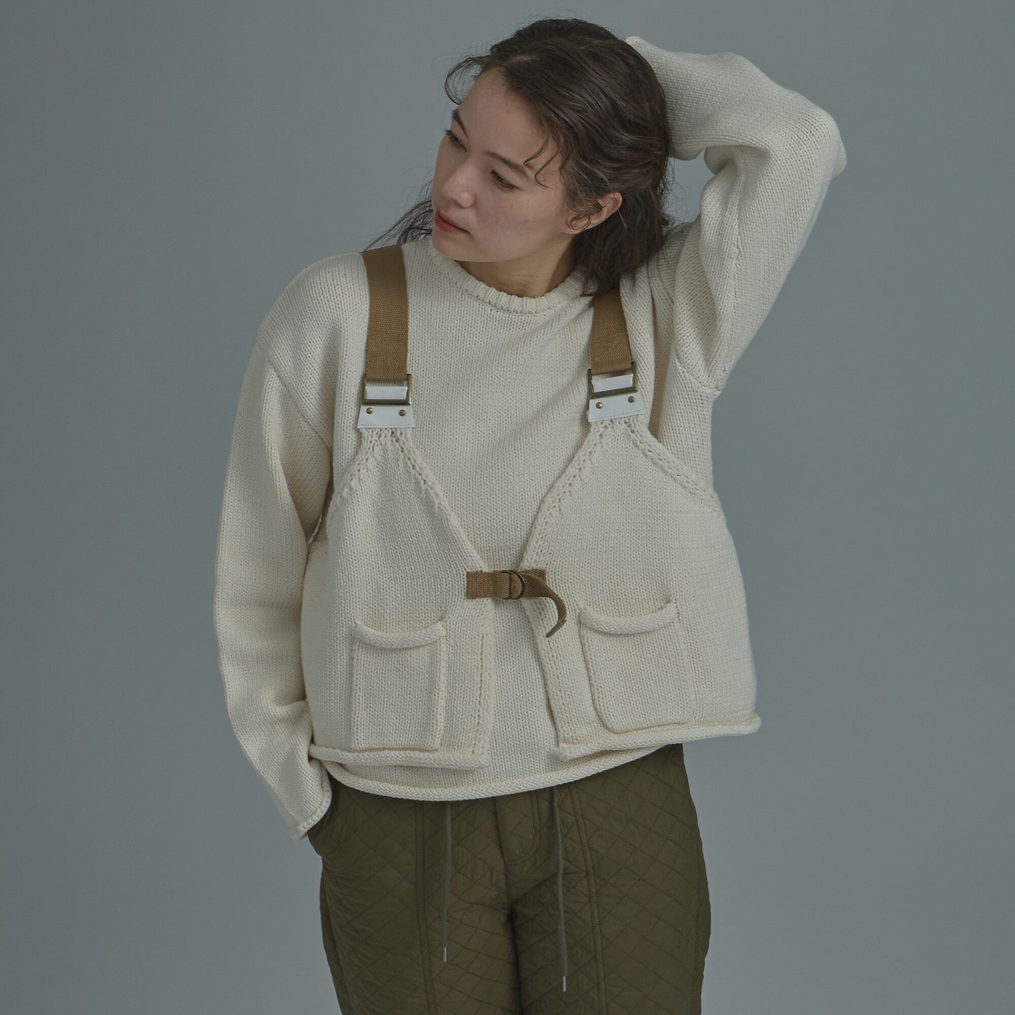 ※モデル着用画像(画像1-5枚目)はサンプルを使用しているため、ベスト肩ベルトの金具とニットの接続部分のカラーが製品と異なります。実際の商品は商品単体画像をご確認ください。