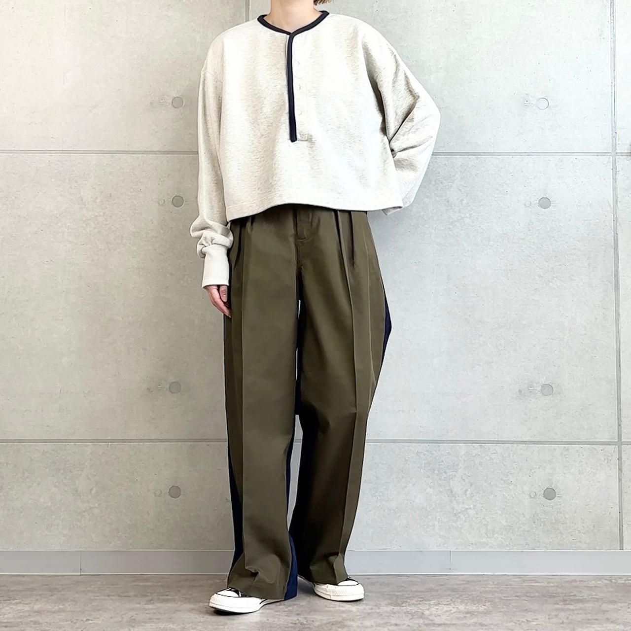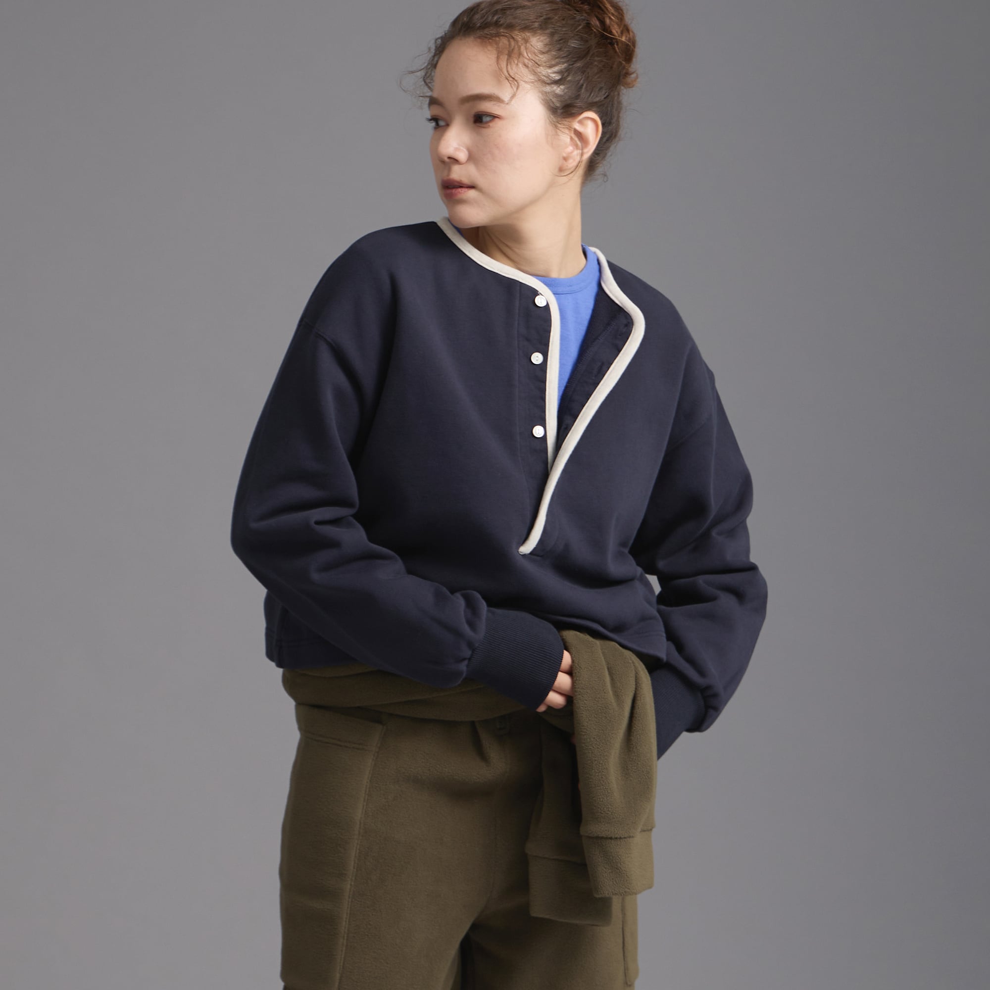 綿100%の裏毛素材を使用した、ヘンリーネックのプルオーバー。