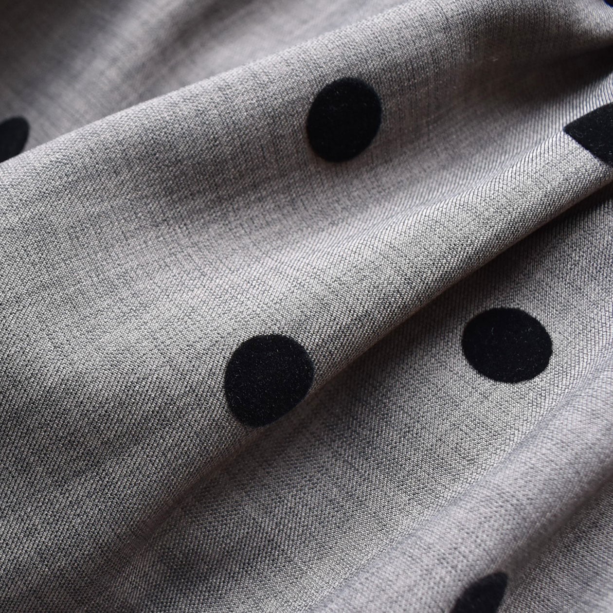 メンズライクな生地を使用することで、甘くなりすぎず大人っぽく着られるドット柄。