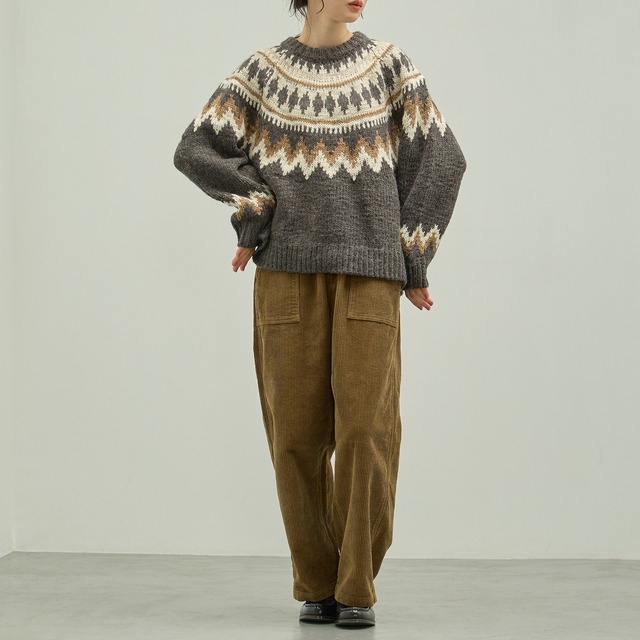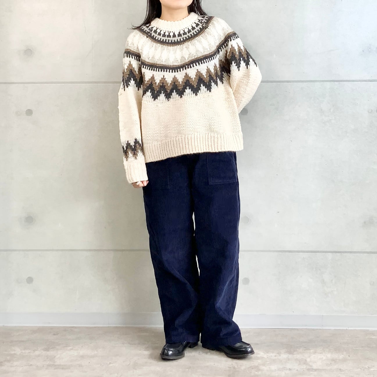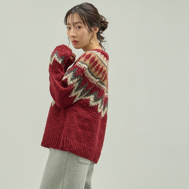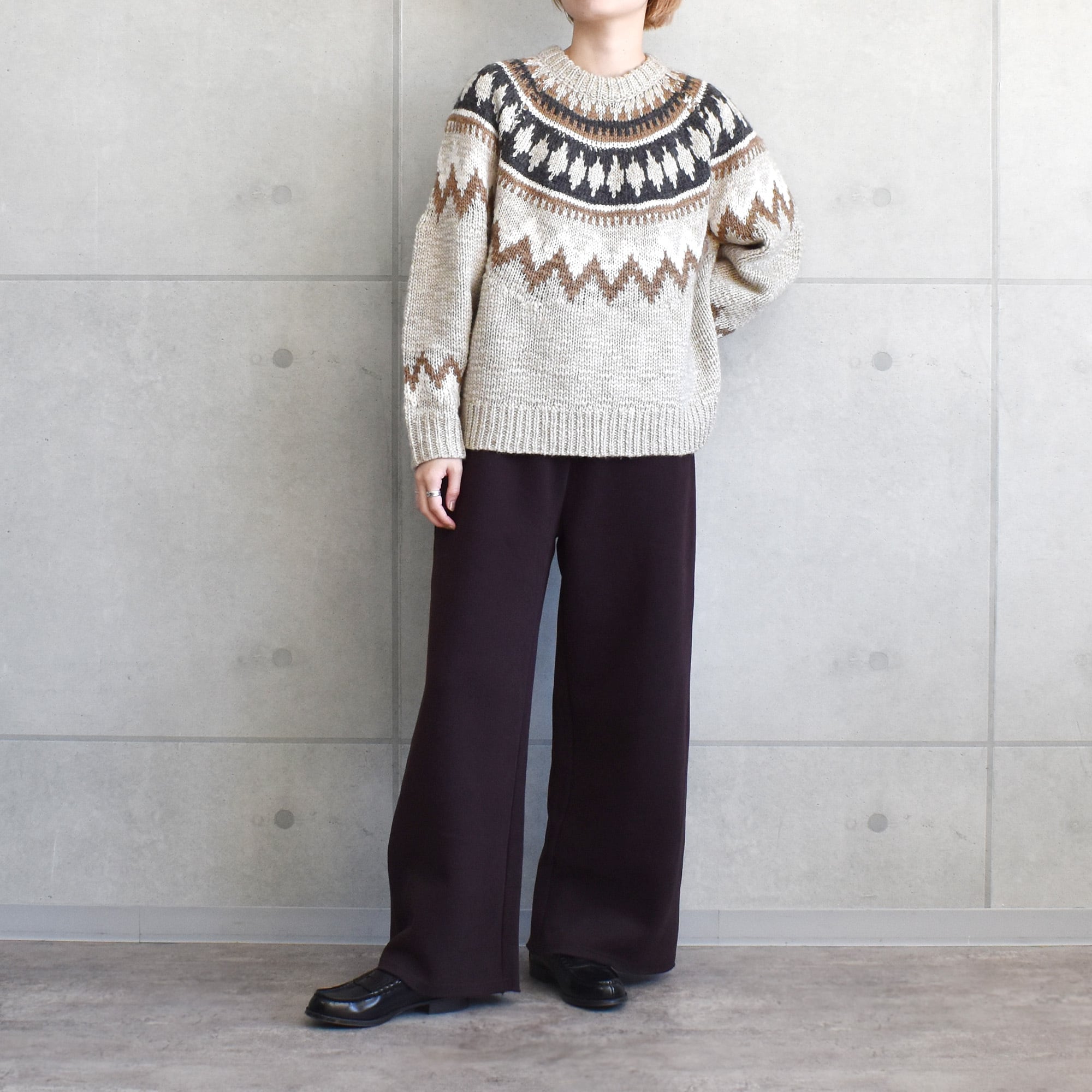 手編みのような温もりと立体感のある表情に仕上げたニット。