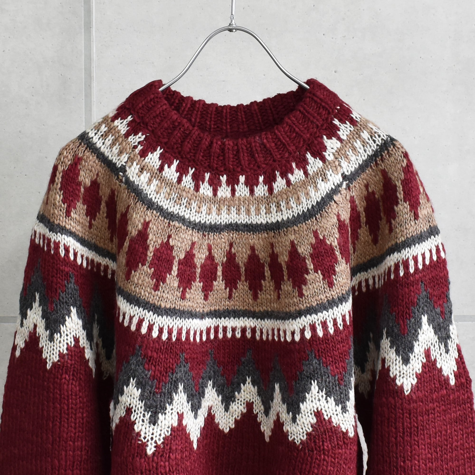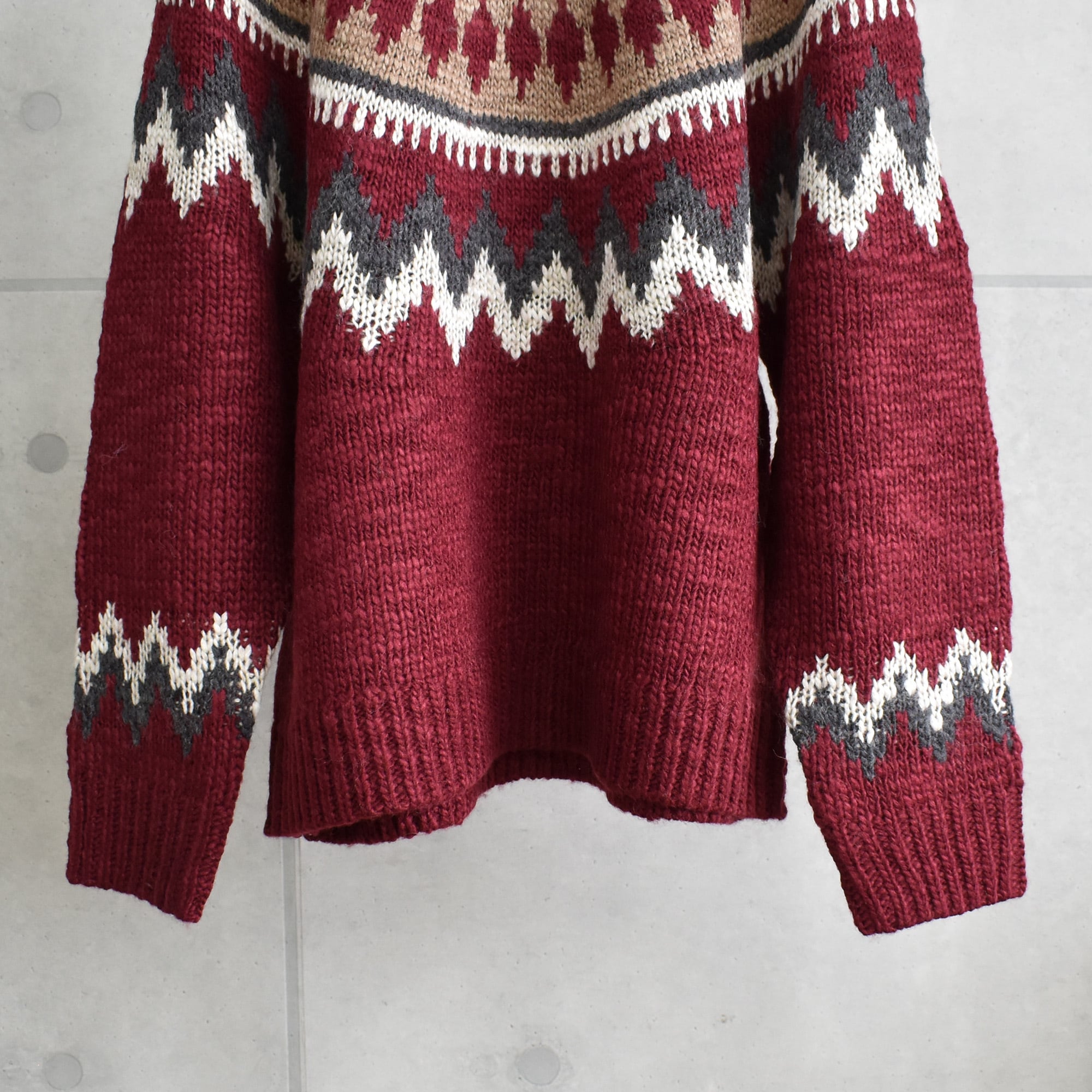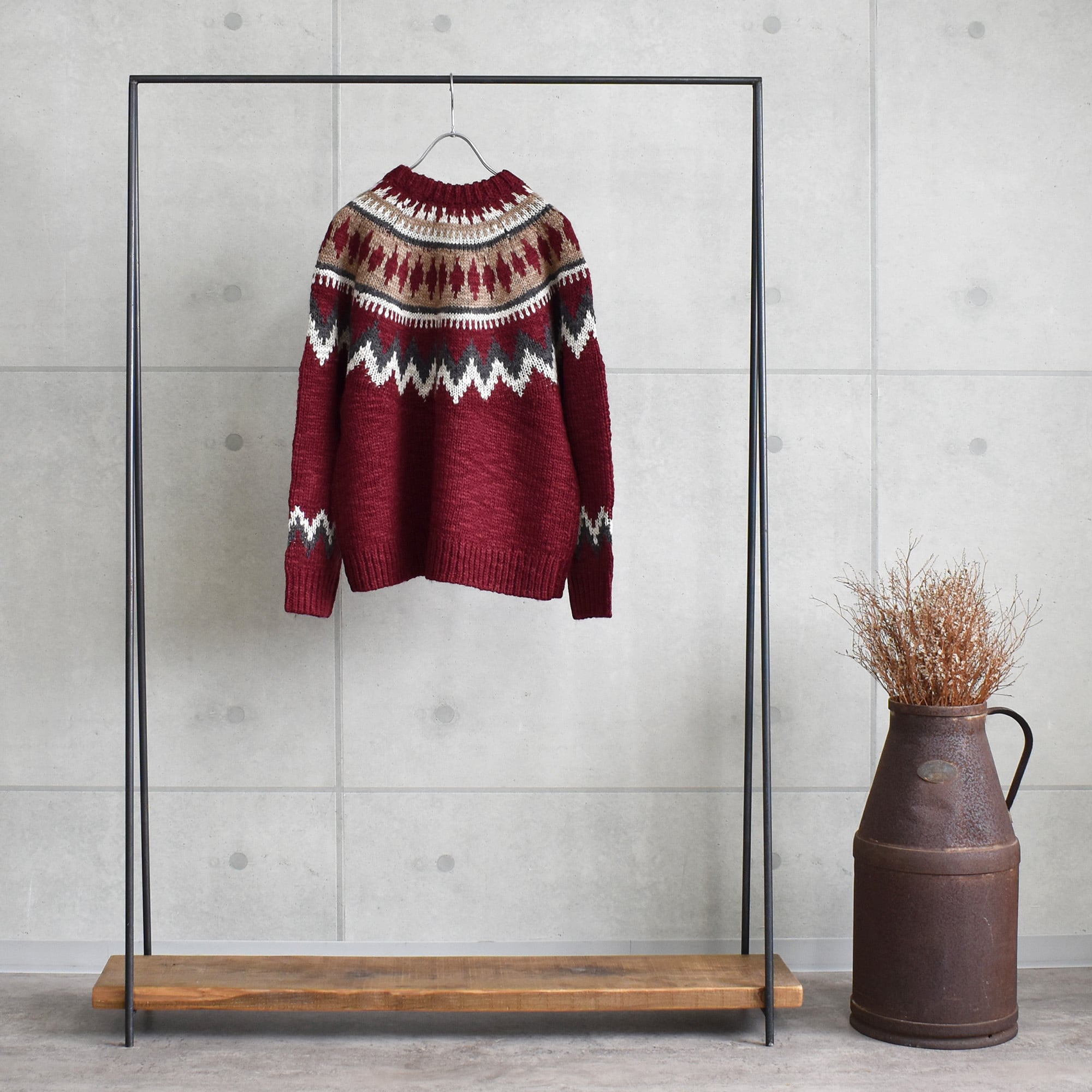手編みのような温もりと立体感のある表情に仕上げたニット。