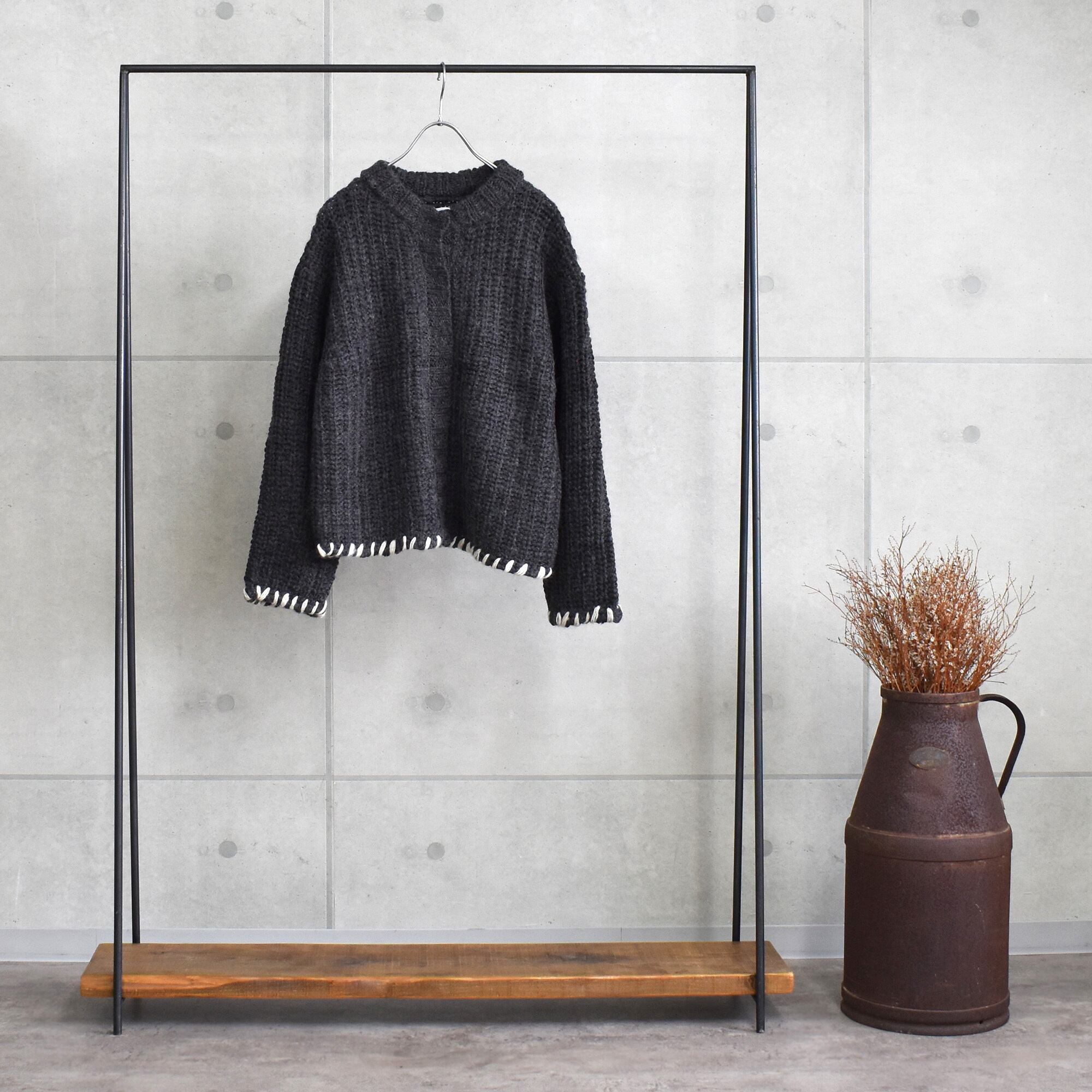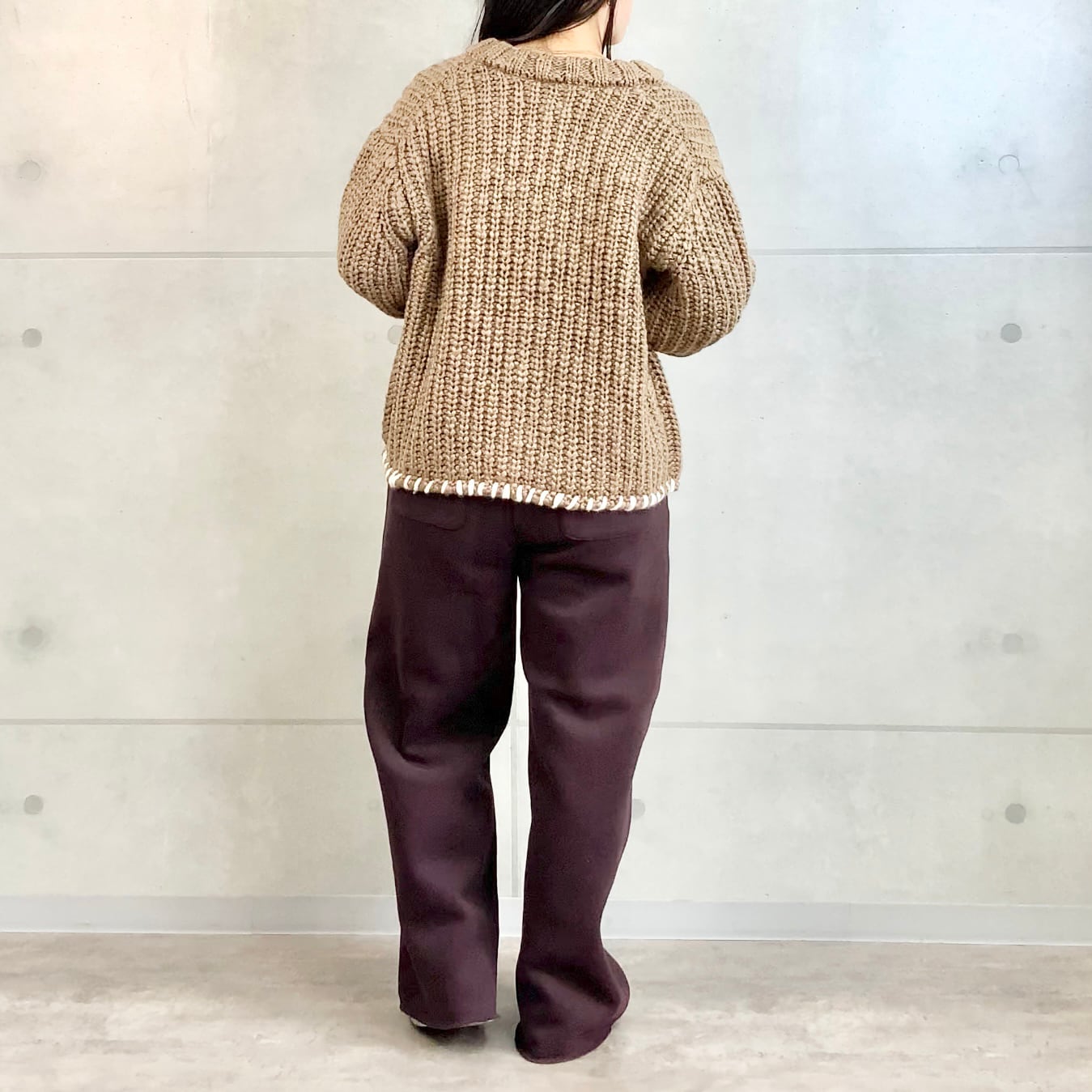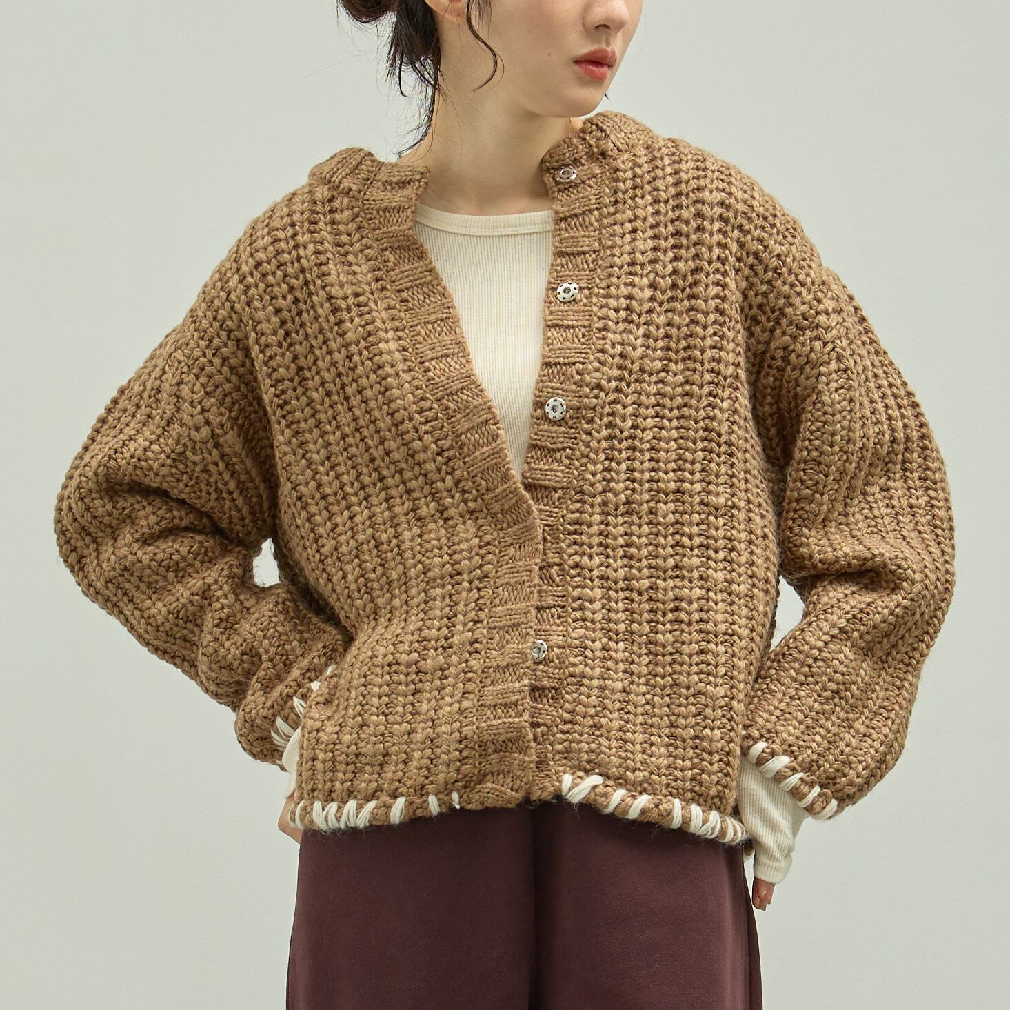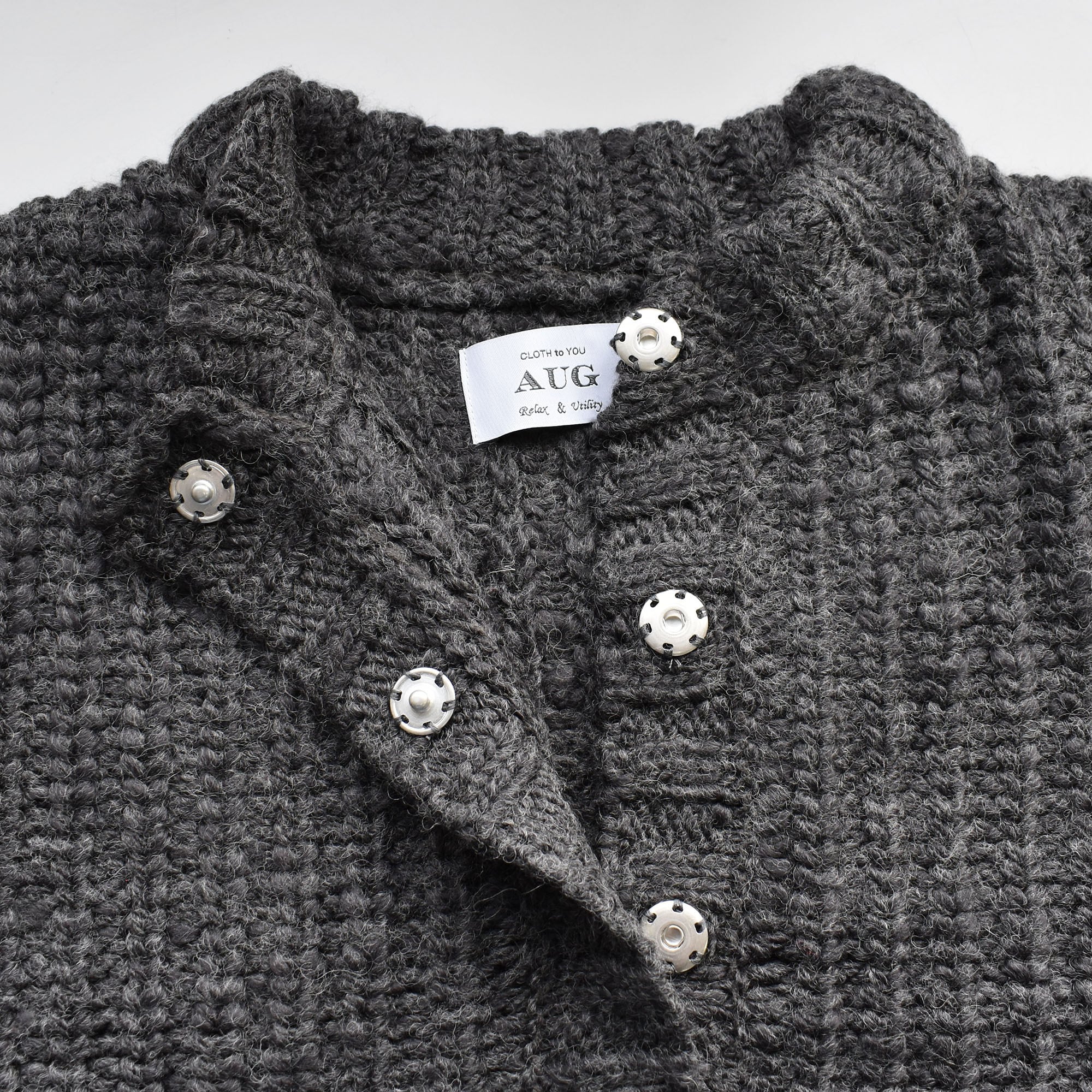 ふんわりと空気を含んだような、手編み風の優しい表情に仕上げたカーディガン。