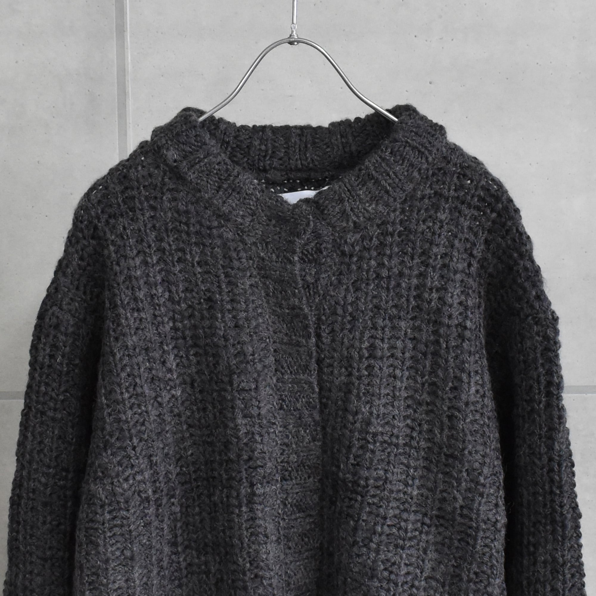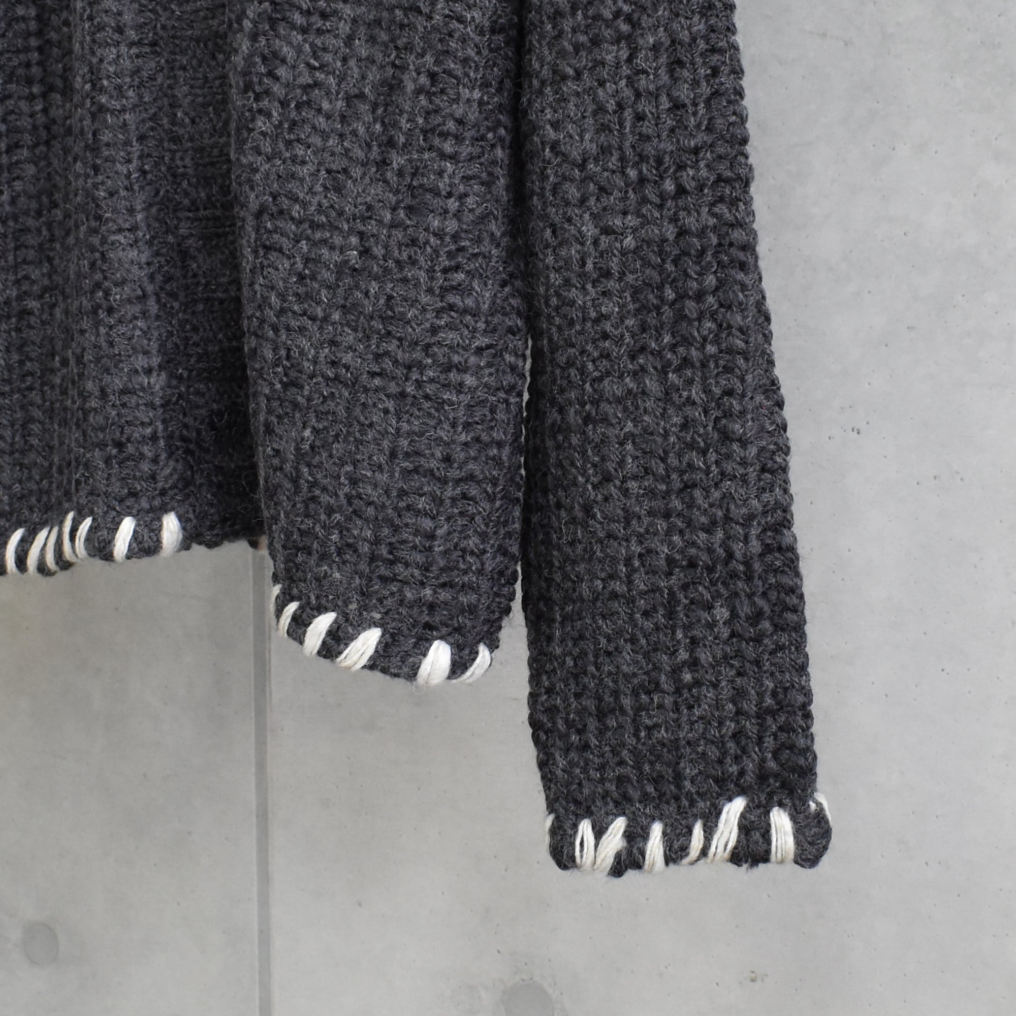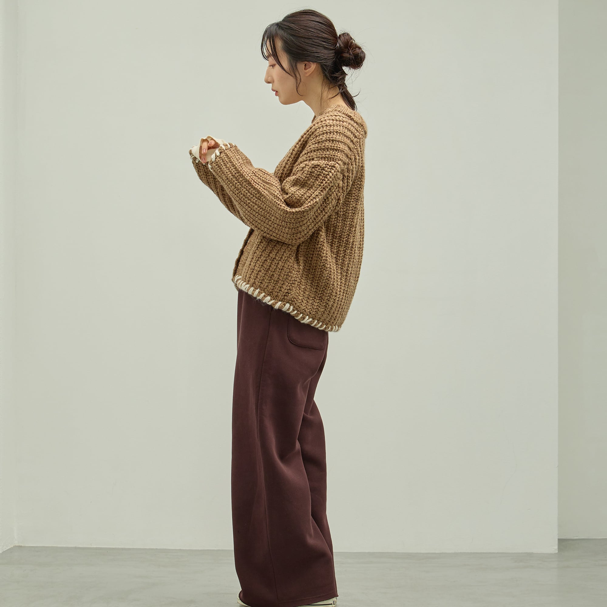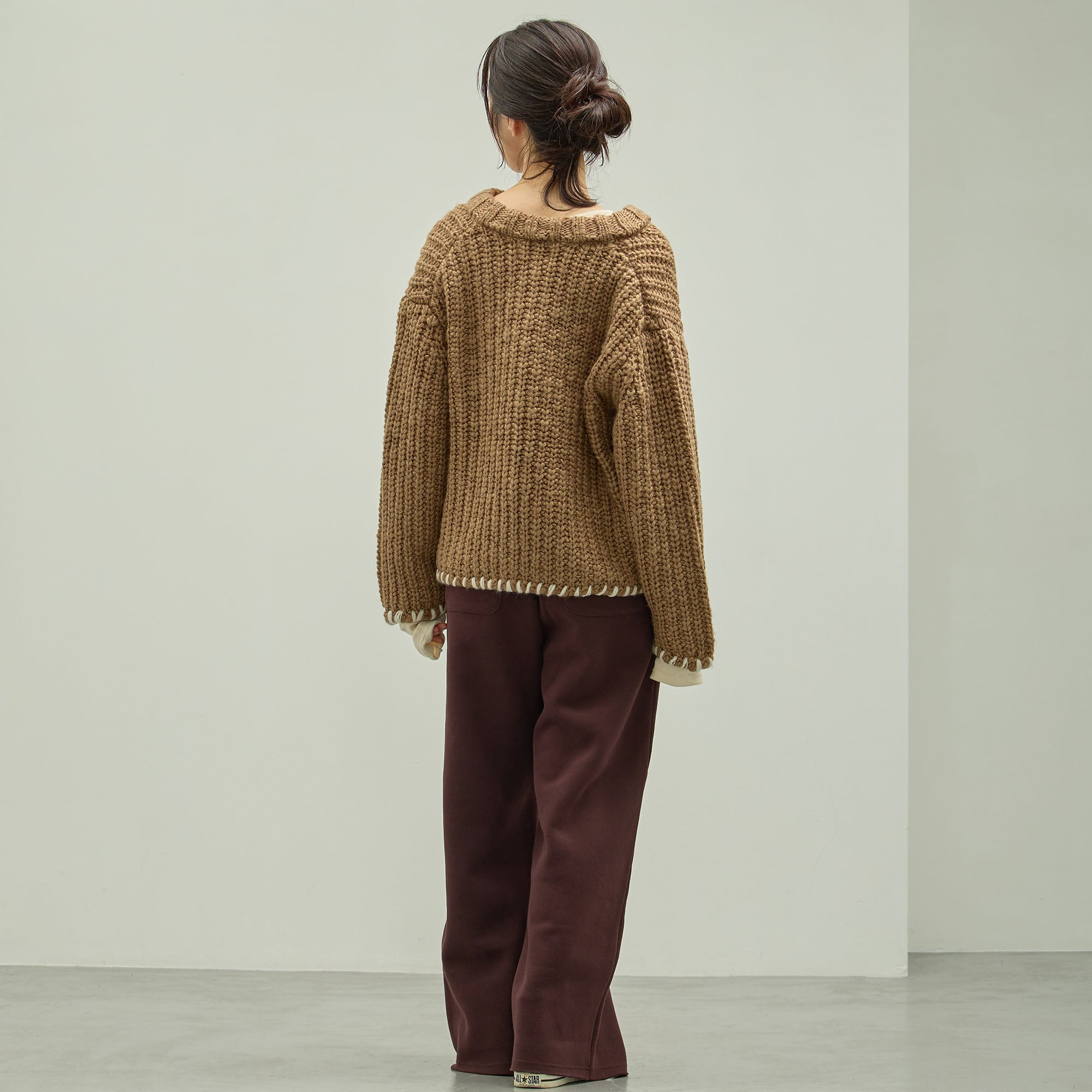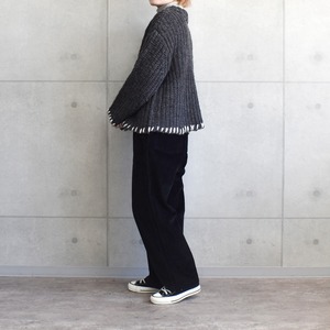 ふんわりと空気を含んだような、手編み風の優しい表情に仕上げたカーディガン。