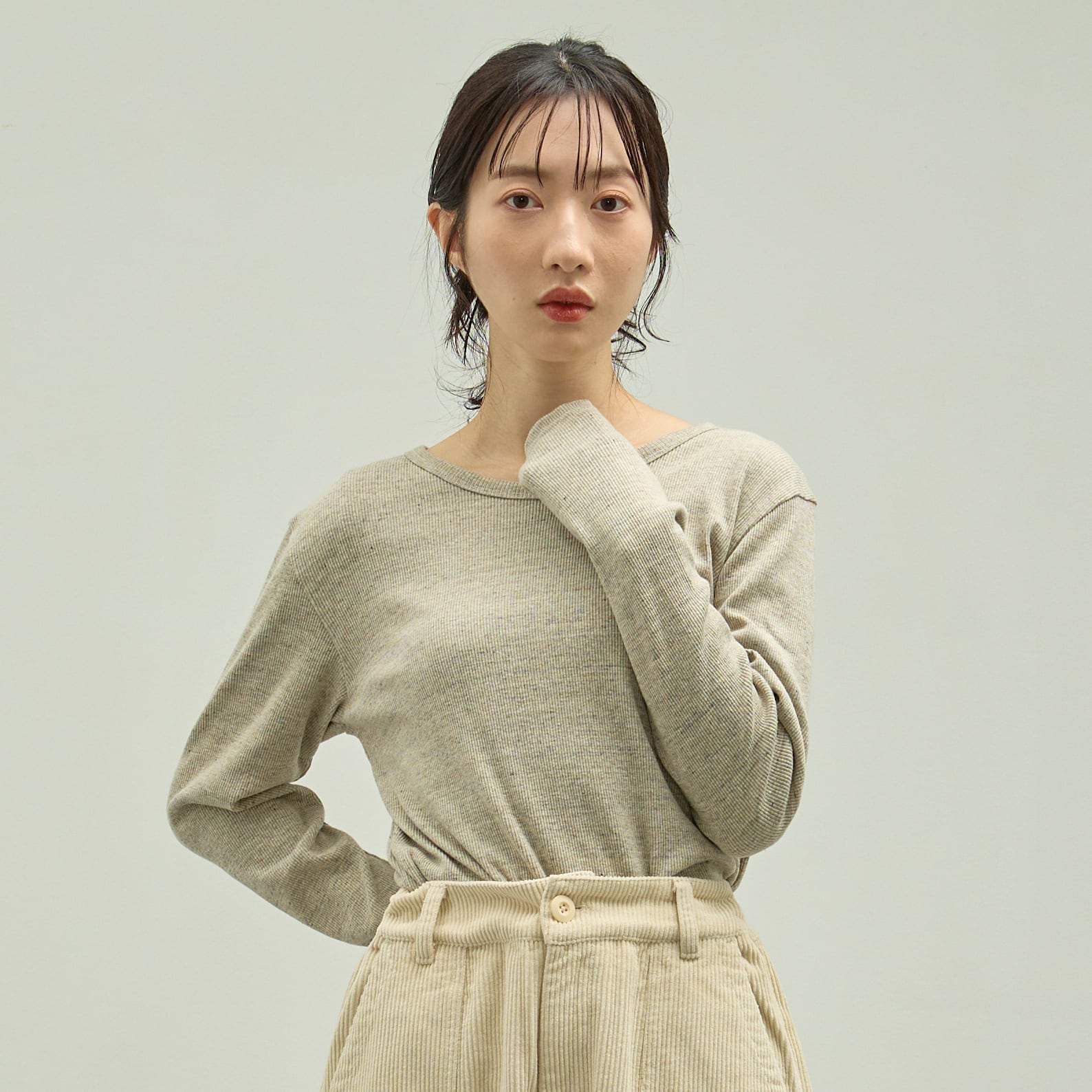 インナーとしても一枚でもバランスよく着られる仕上がり。
