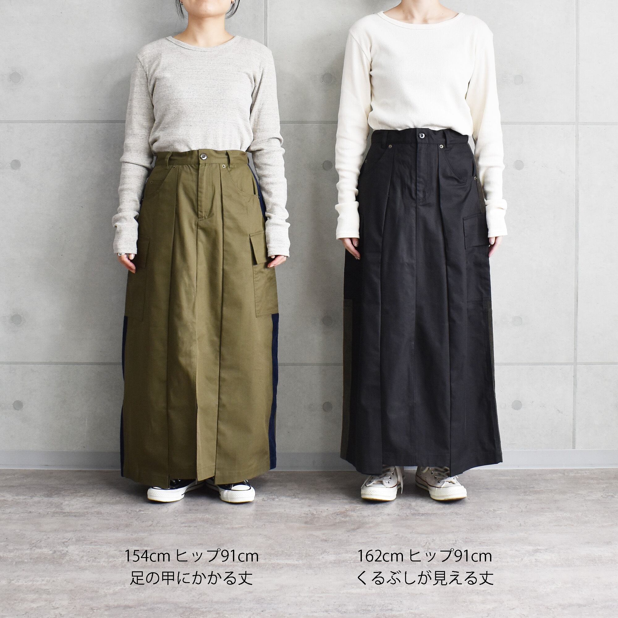 BLACK(画像1-4枚目), KHAKI(画像5-7枚目)着用モデル身長 : 165cm