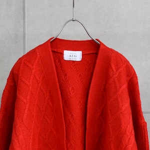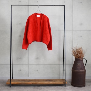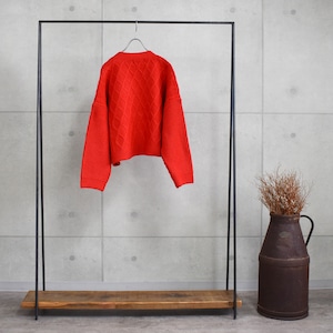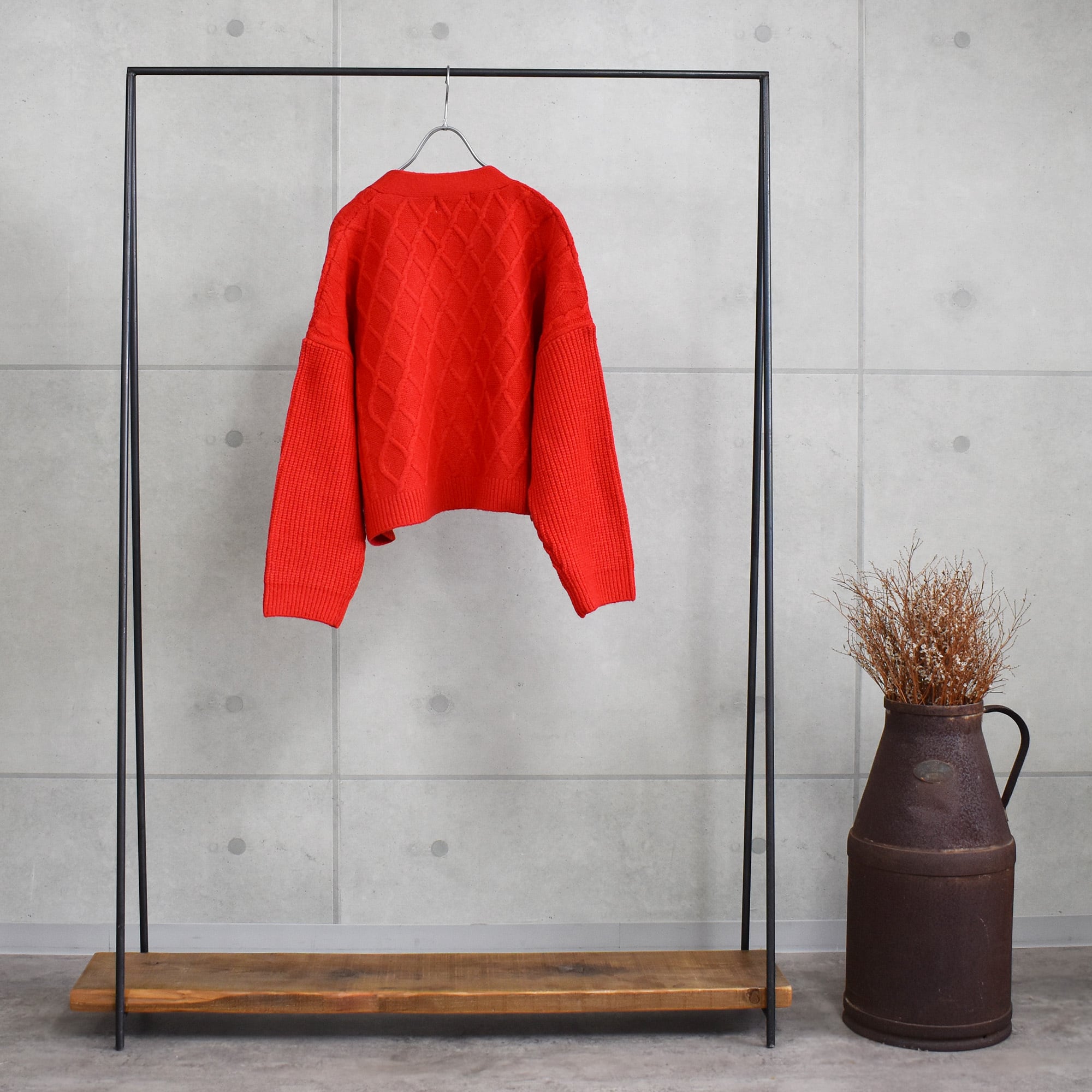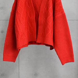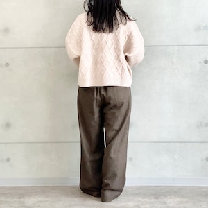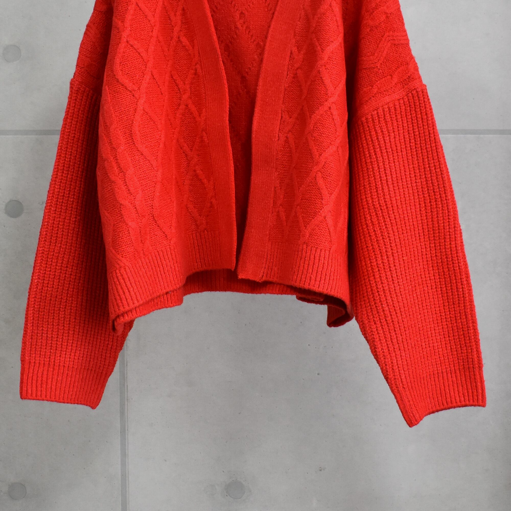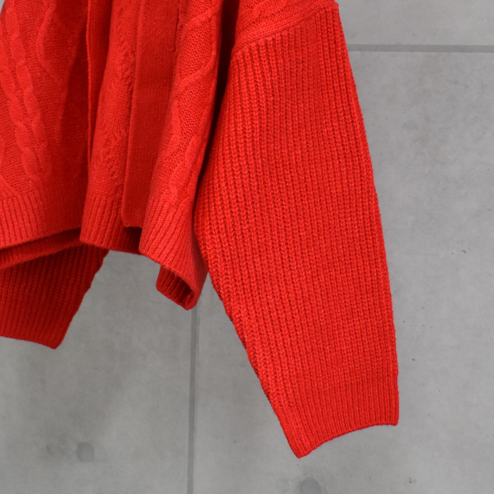 身頃はケーブル編み、袖はリブ編みで切り替え、