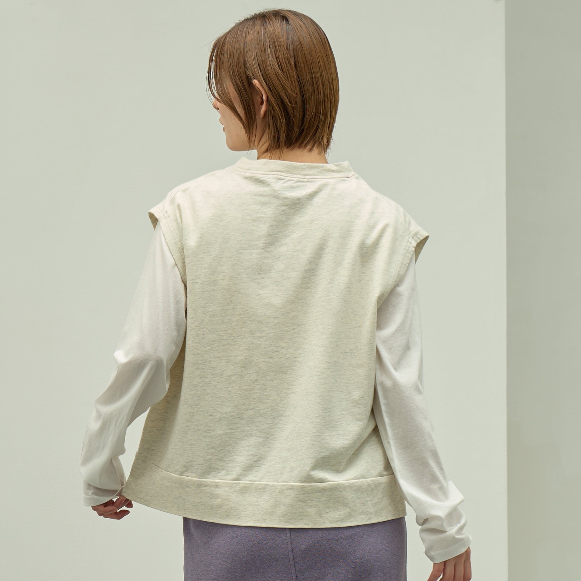 柔らかく肌触りの良いフレンチテリー(ミニ裏毛)を使用したサイドボタンベスト。