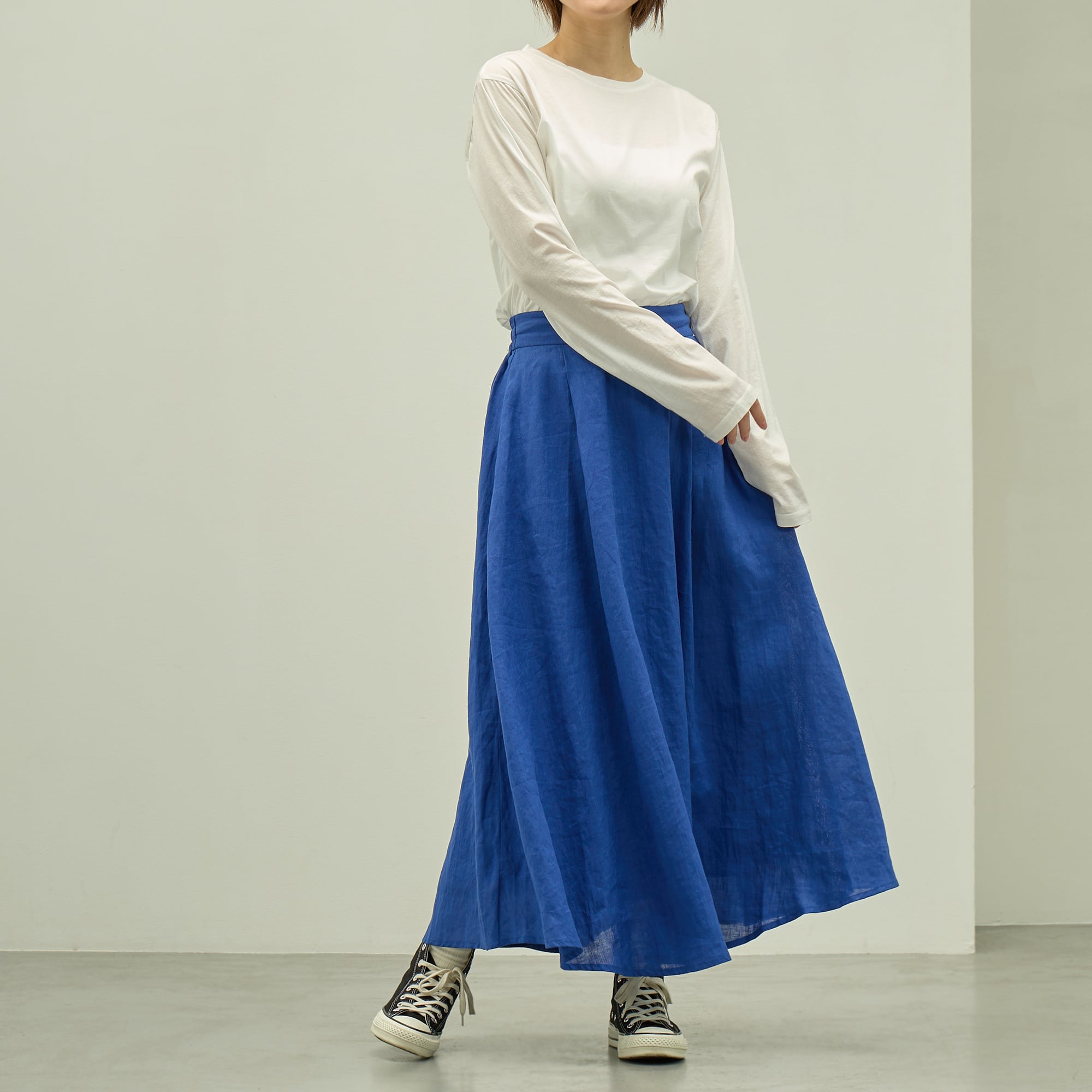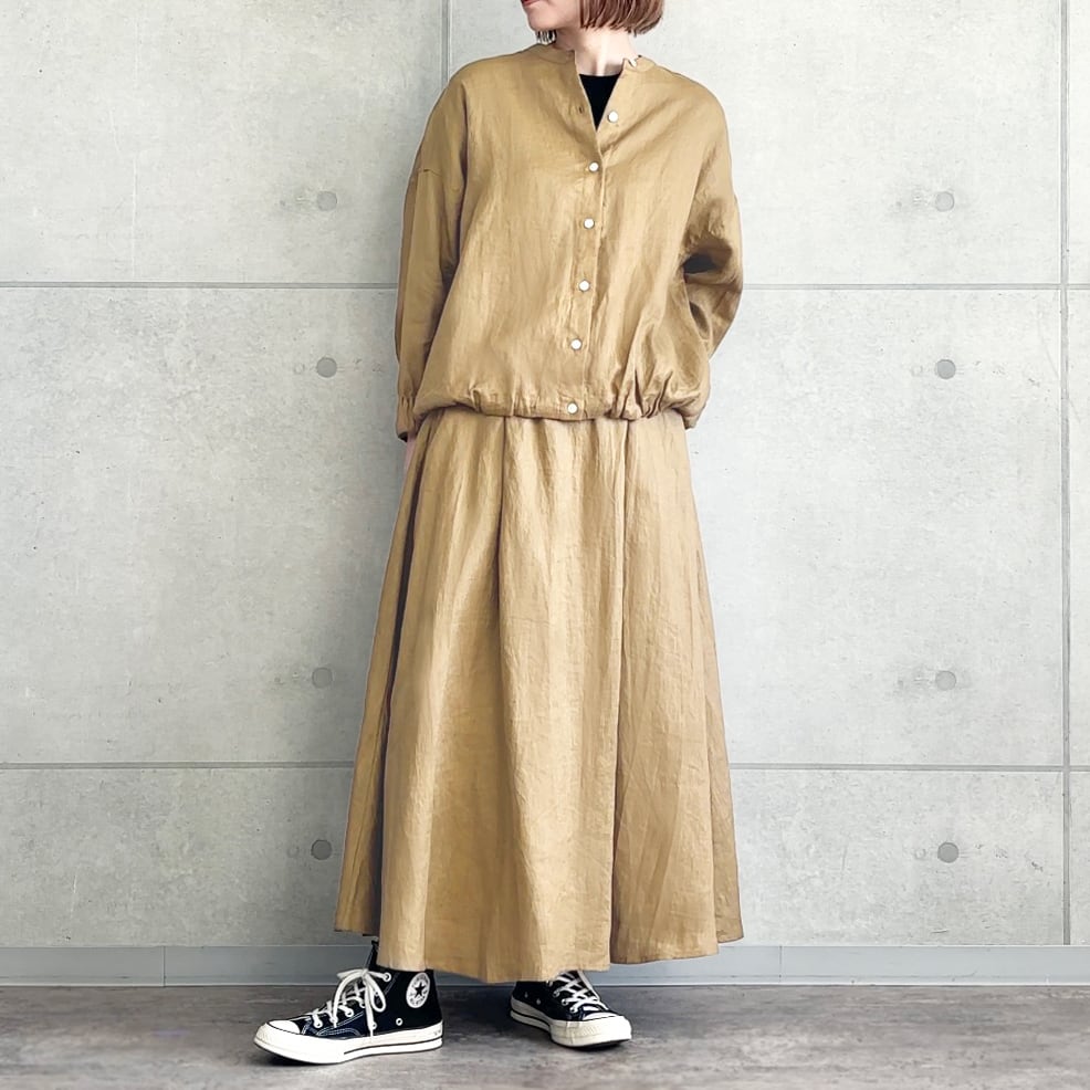 リネン タック サーキュラー スカート|裏地付き