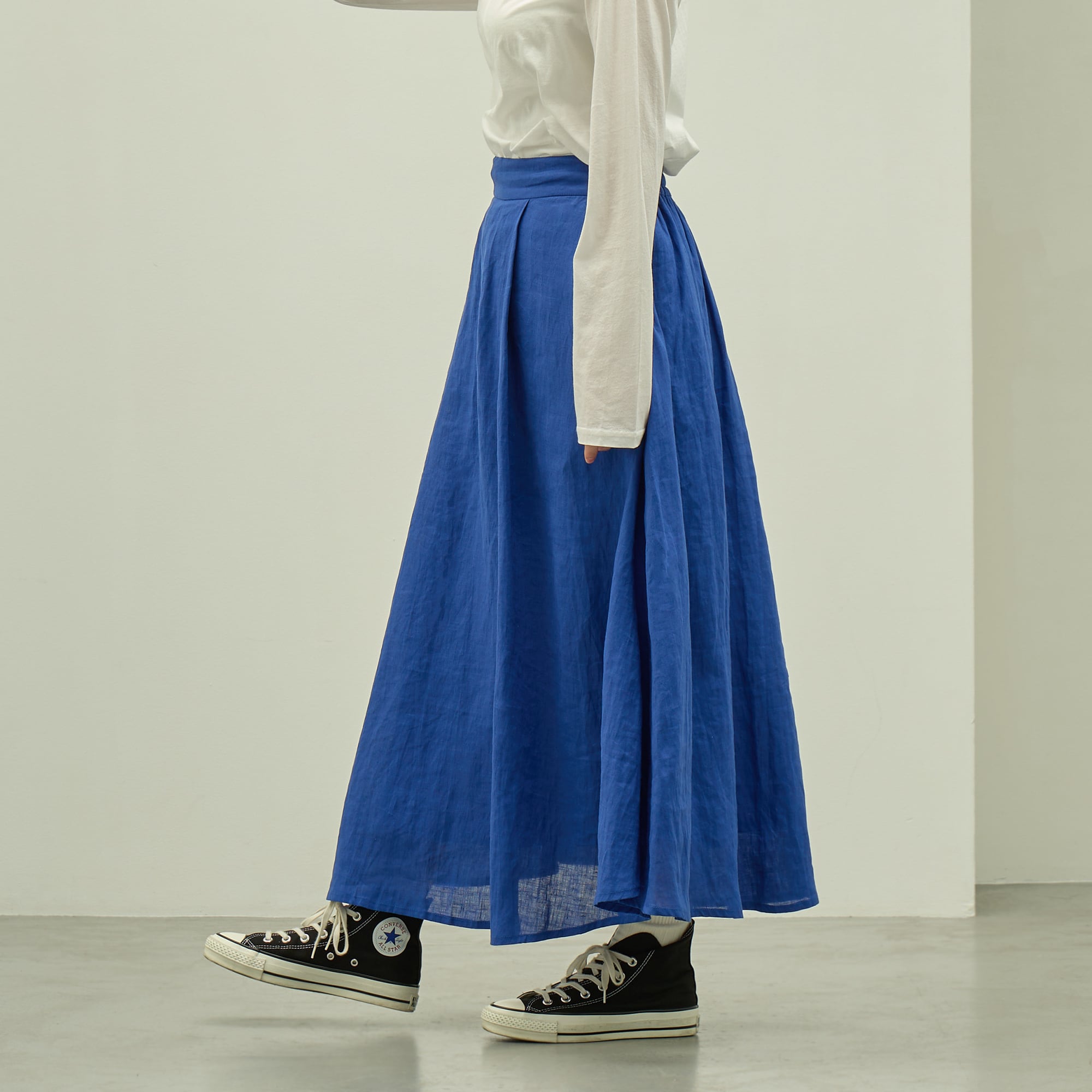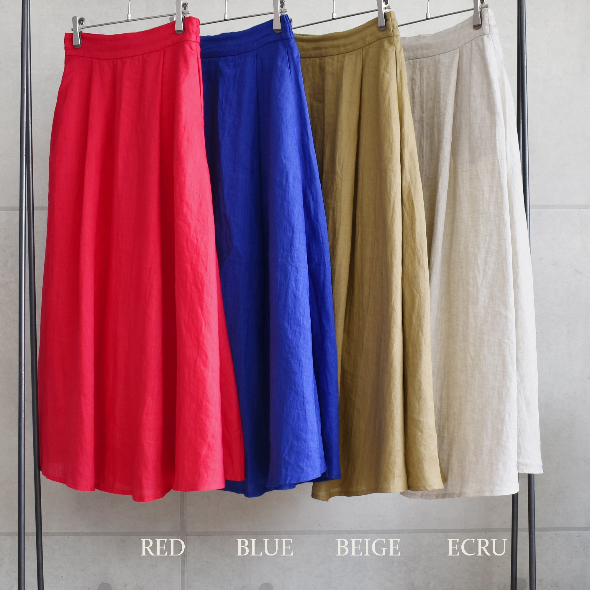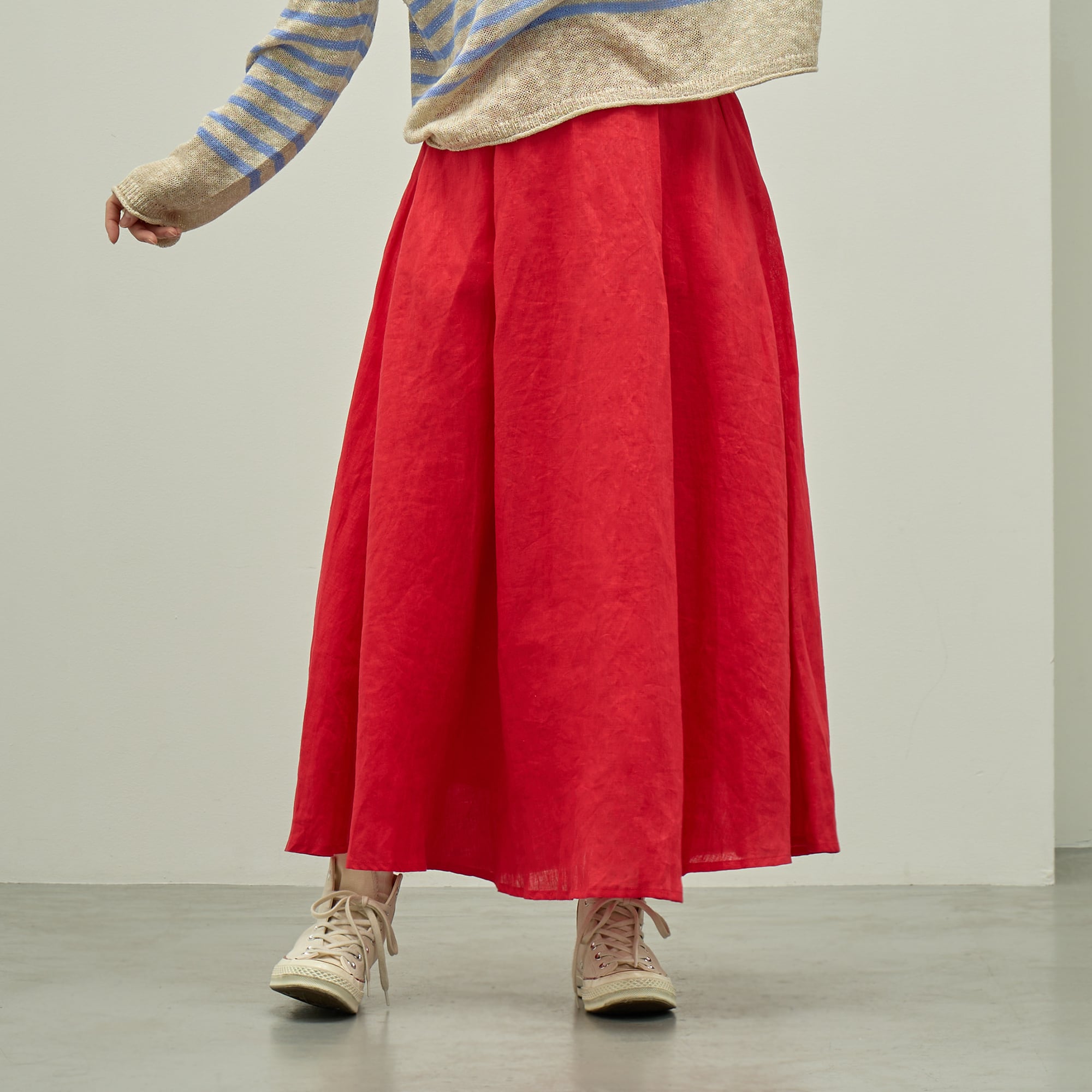 軽くて適度な厚みと上品な光沢が魅力のリネン生地を使用したサーキュラースカート。