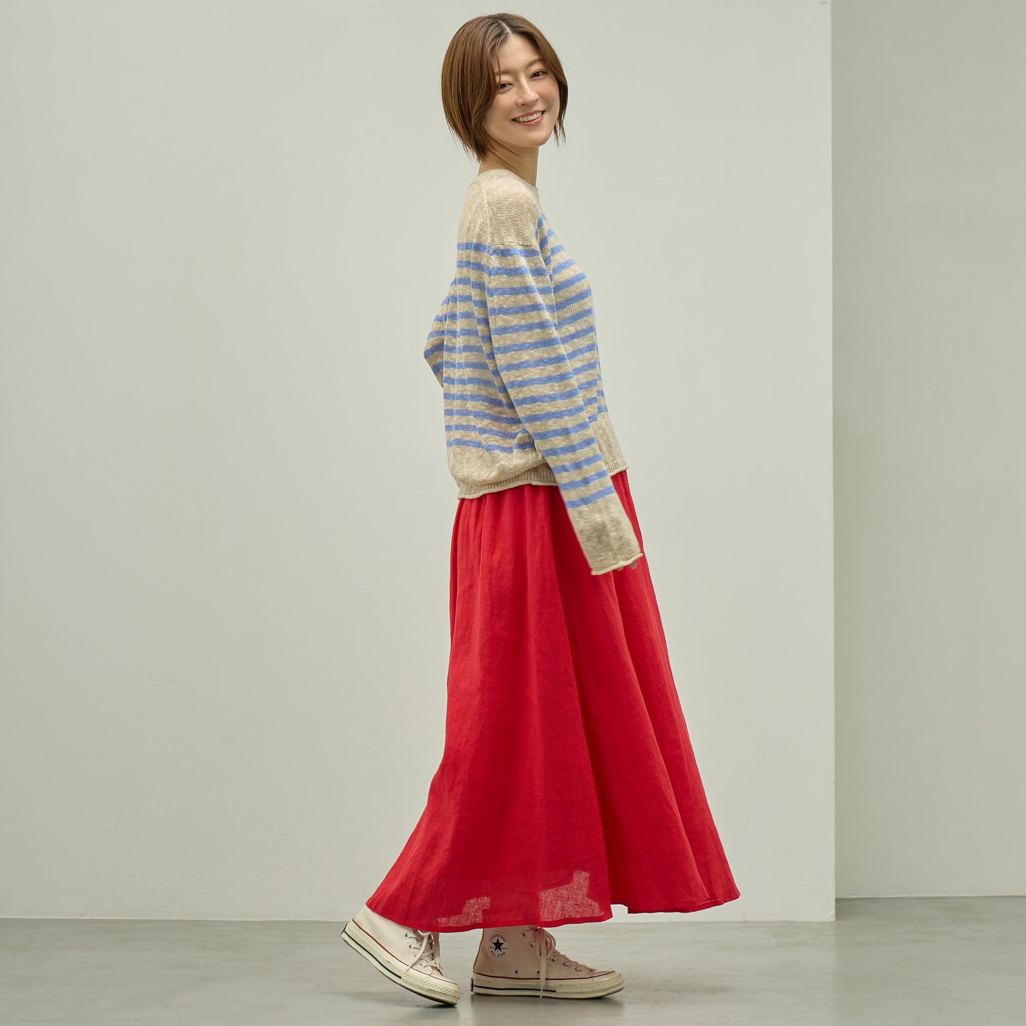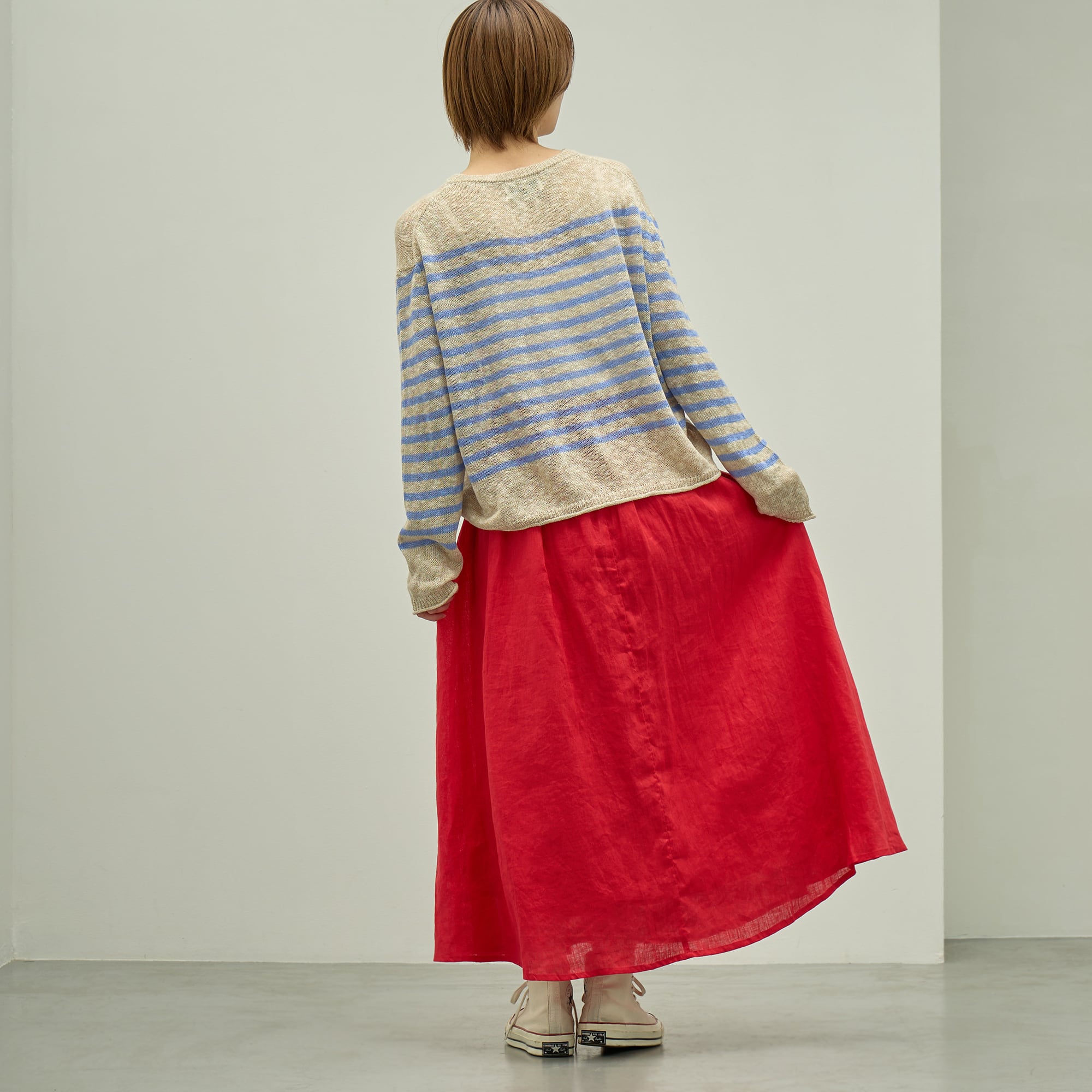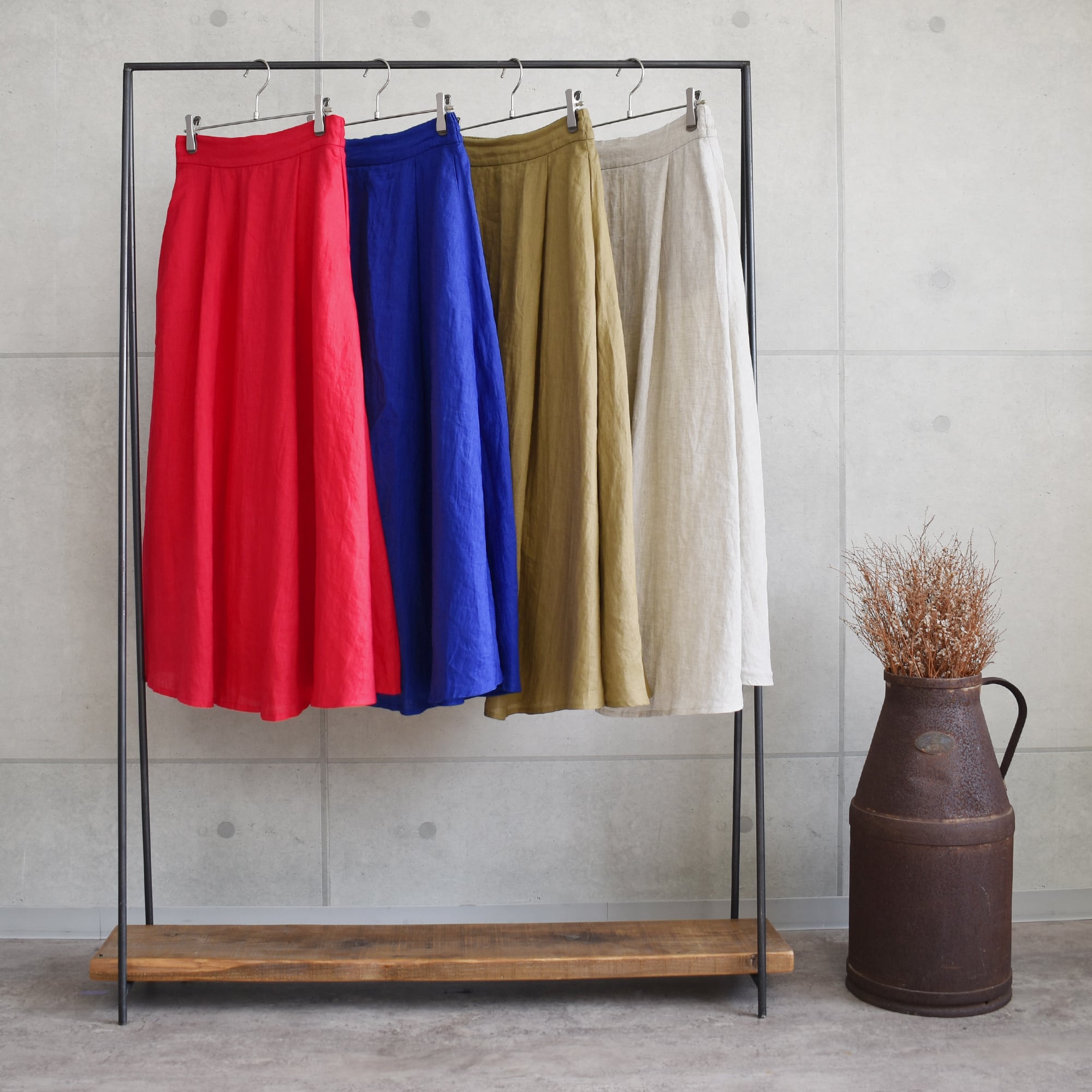 軽くて適度な厚みと上品な光沢が魅力のリネン生地を使用したサーキュラースカート。