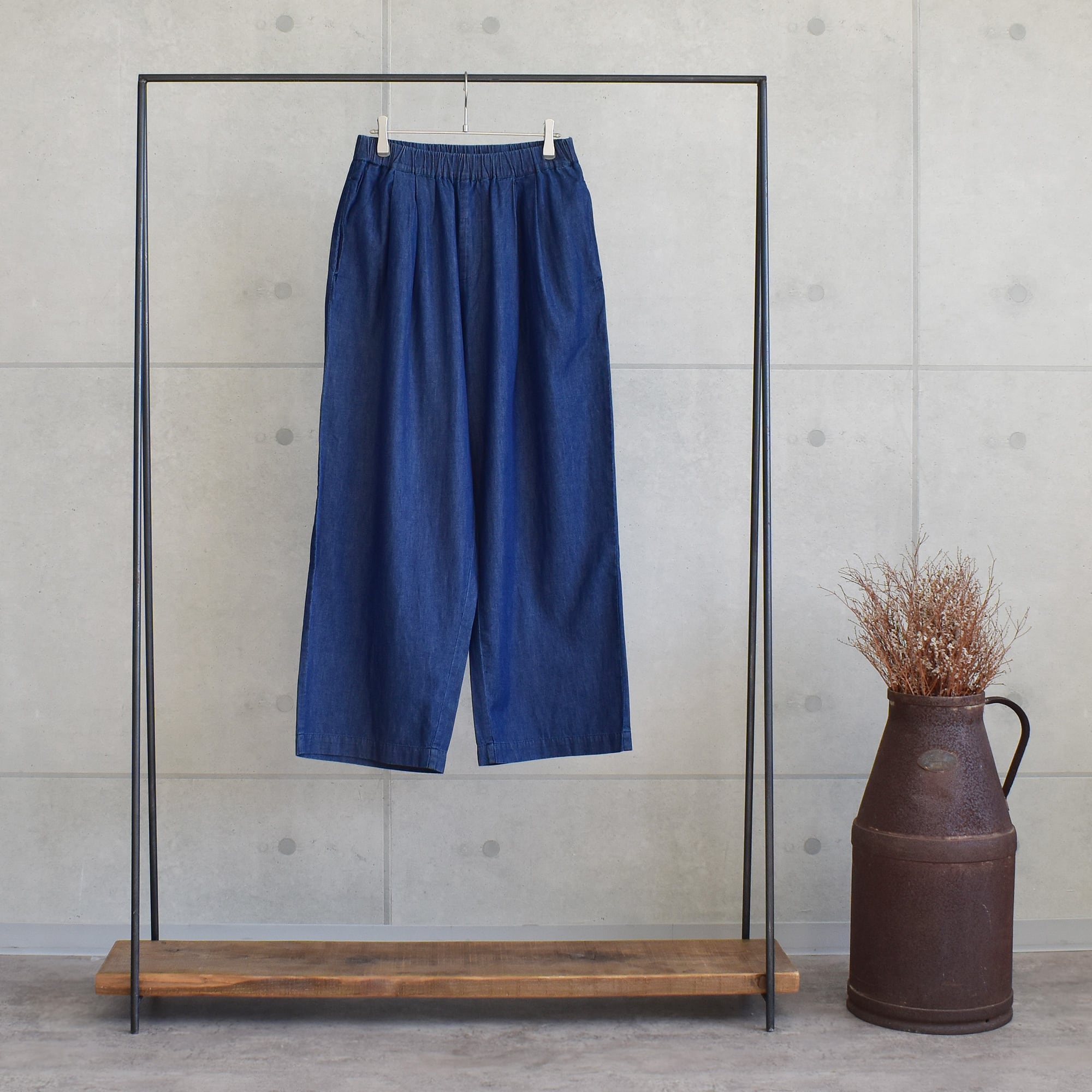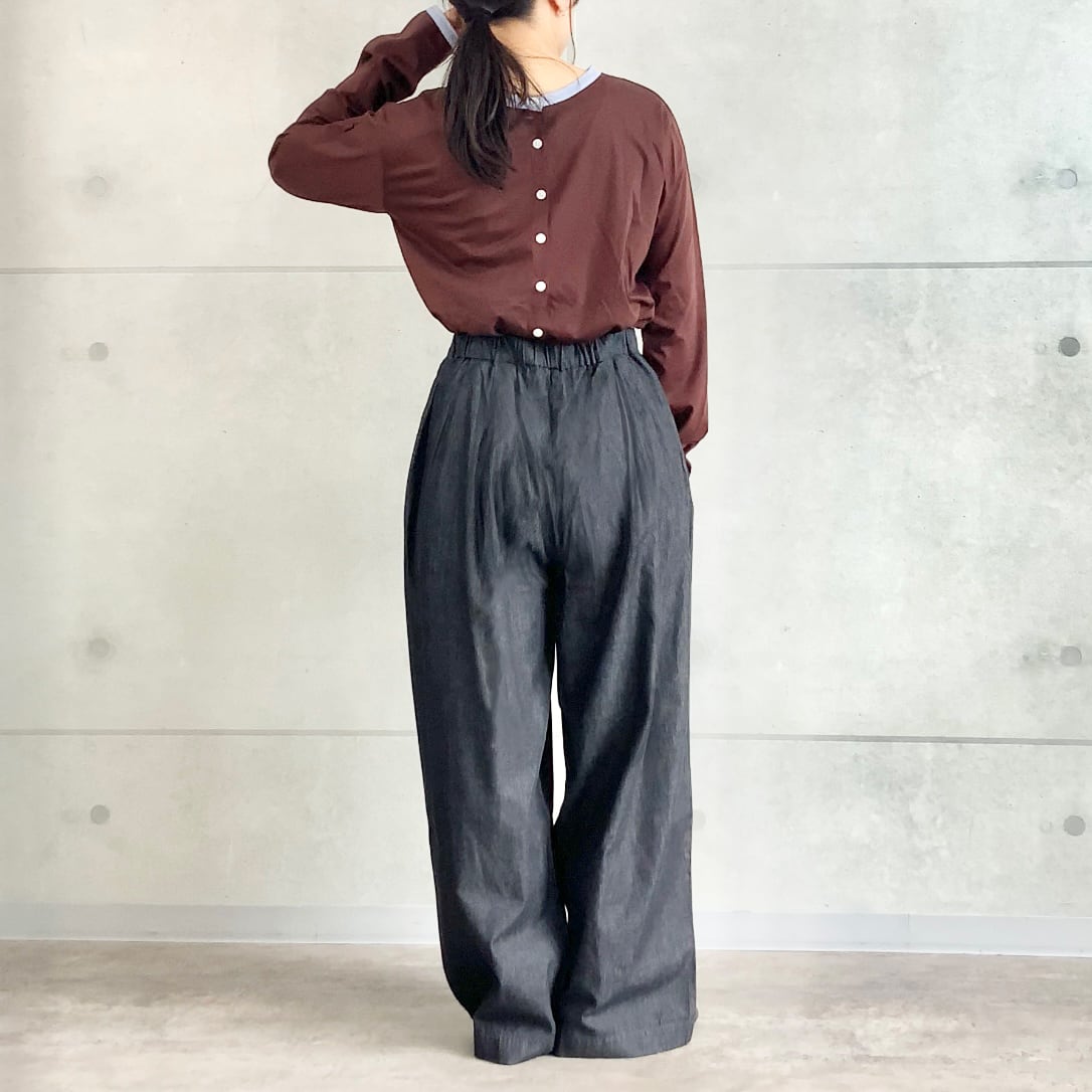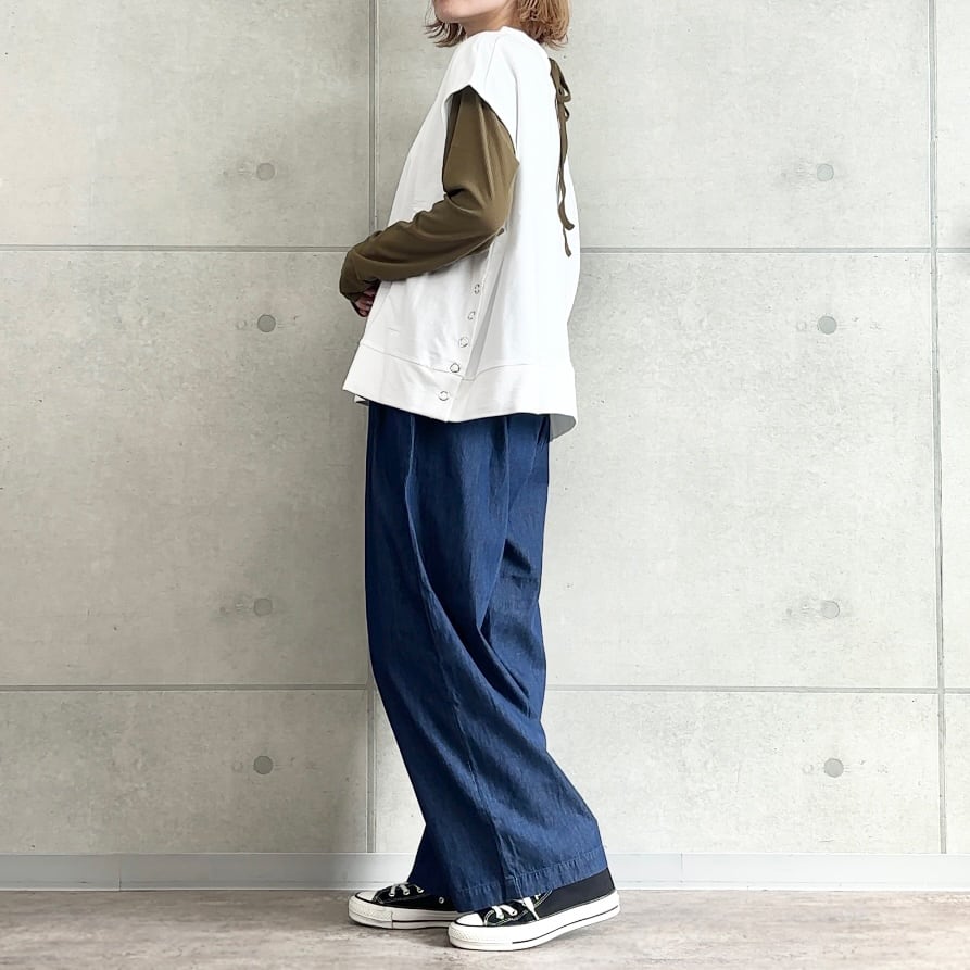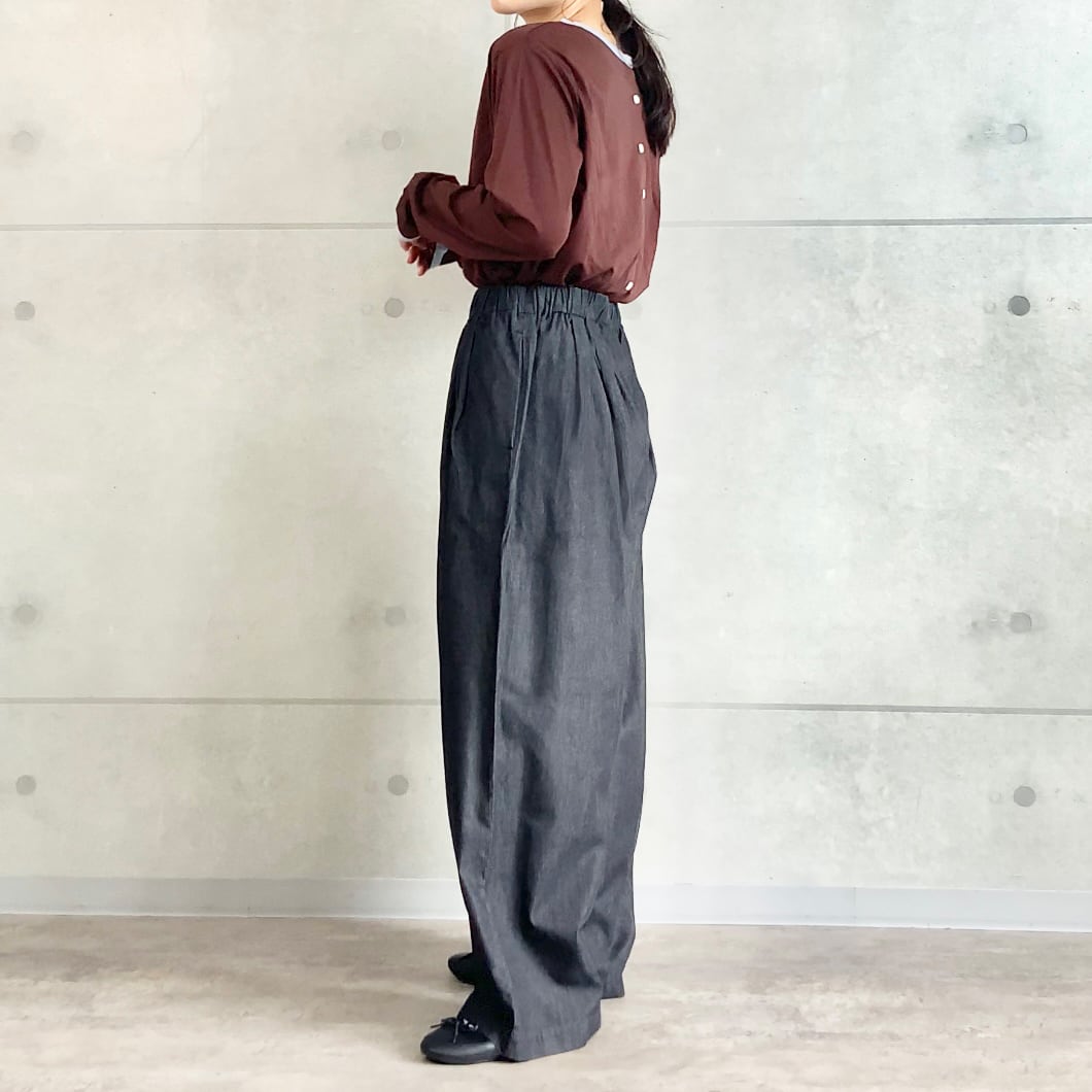 ライトデニム タック パンツ|ウエスト調節可