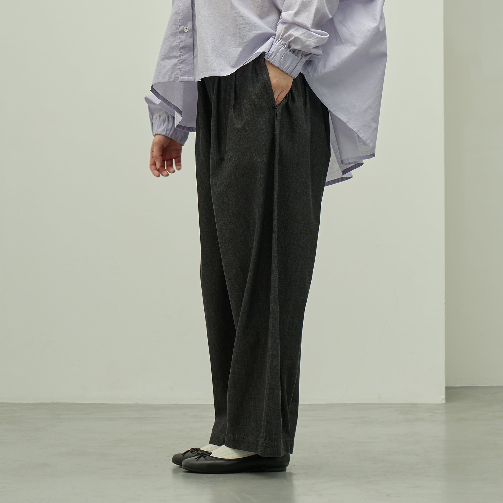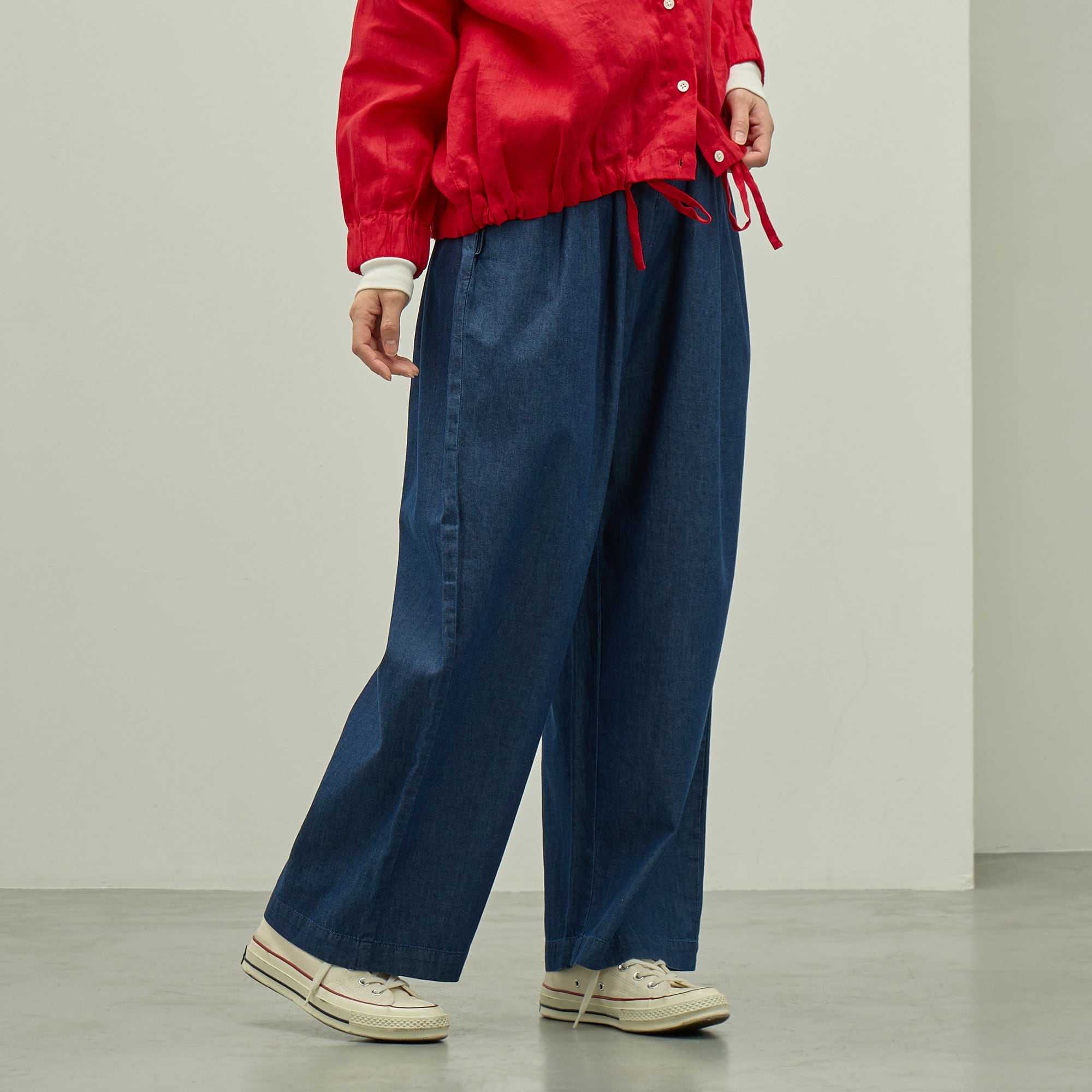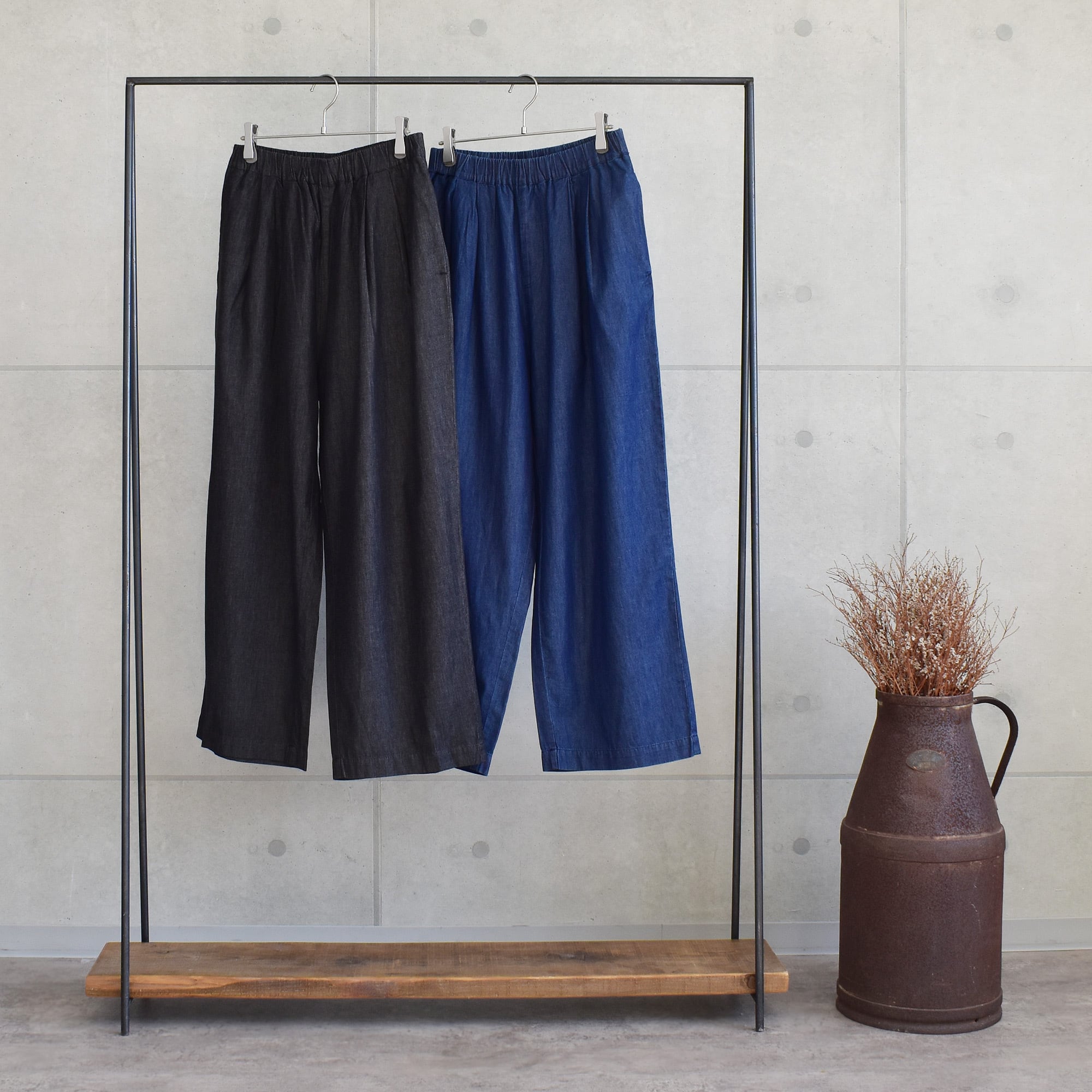 ライトデニム タック パンツ|ウエスト調節可