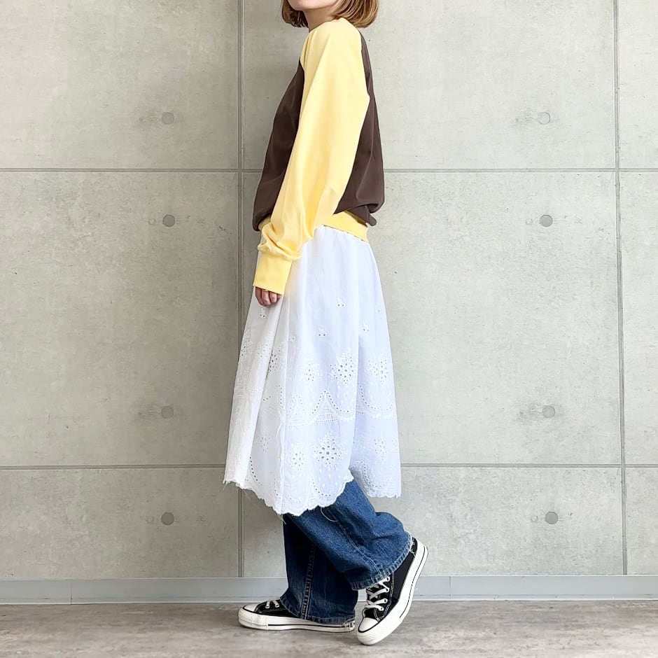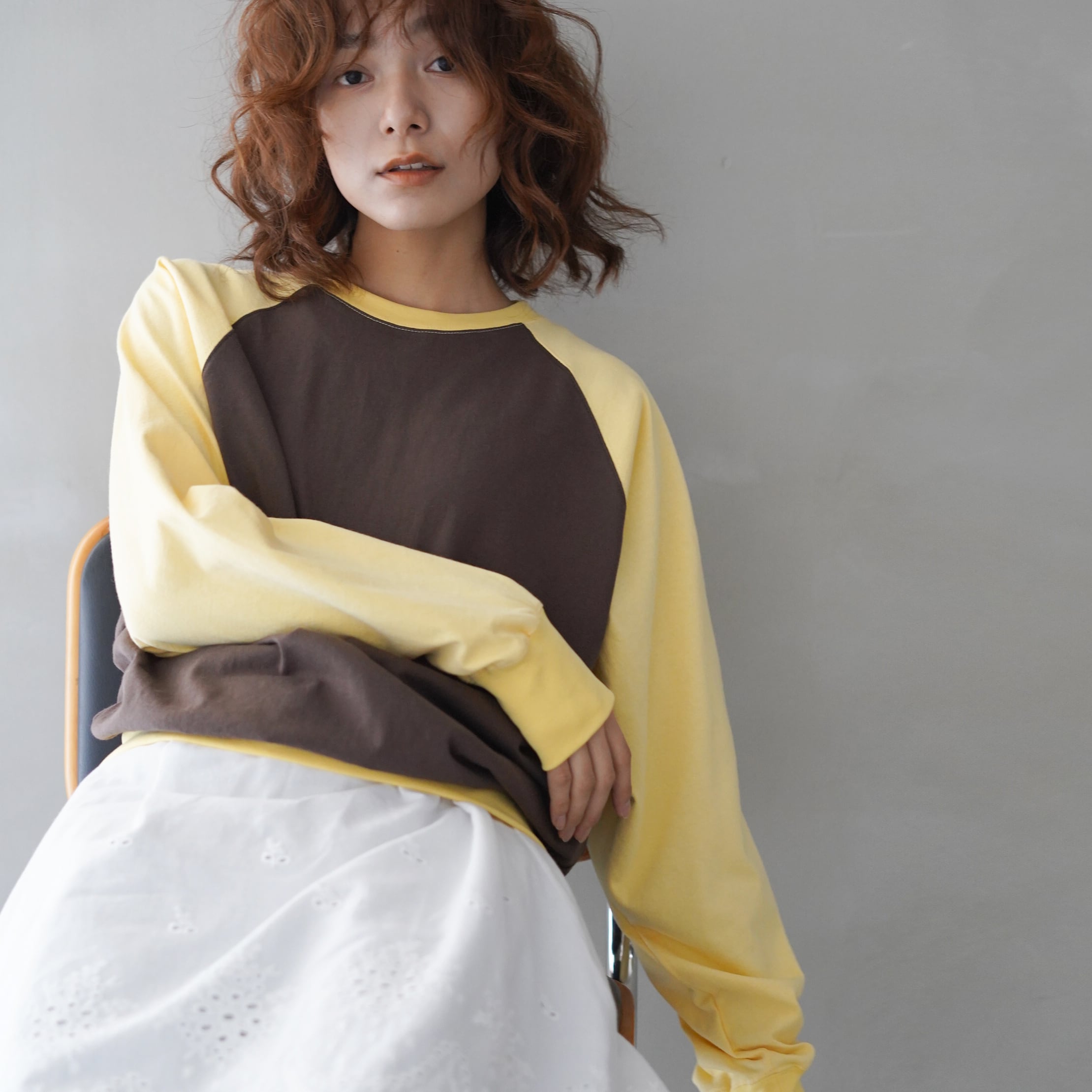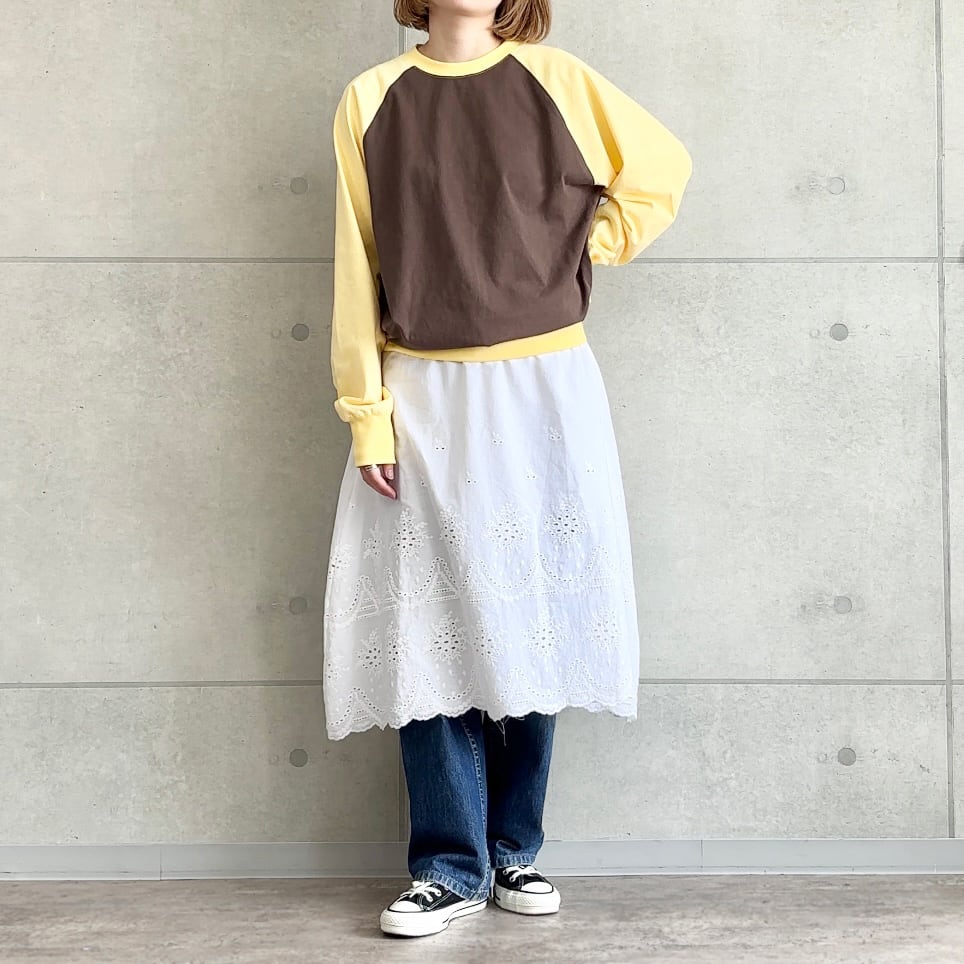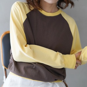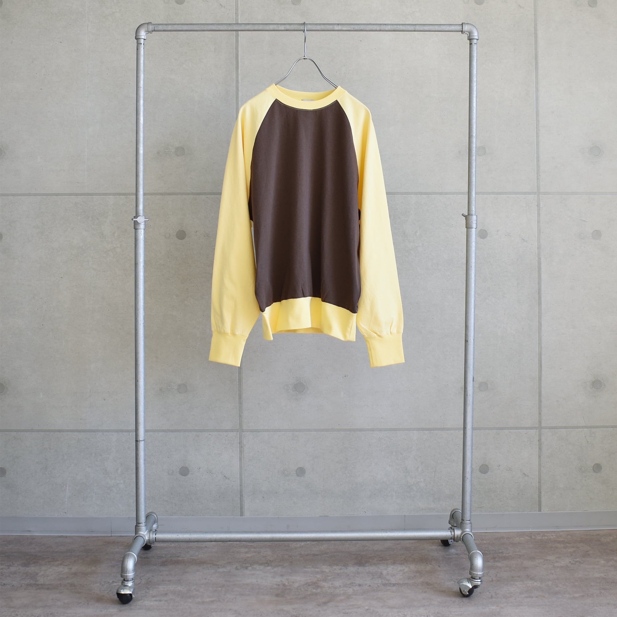 aleeの定番になりつつあるラグランカットソーを、ひと癖ある配色でアップデート。