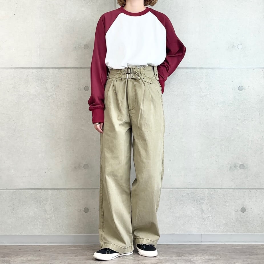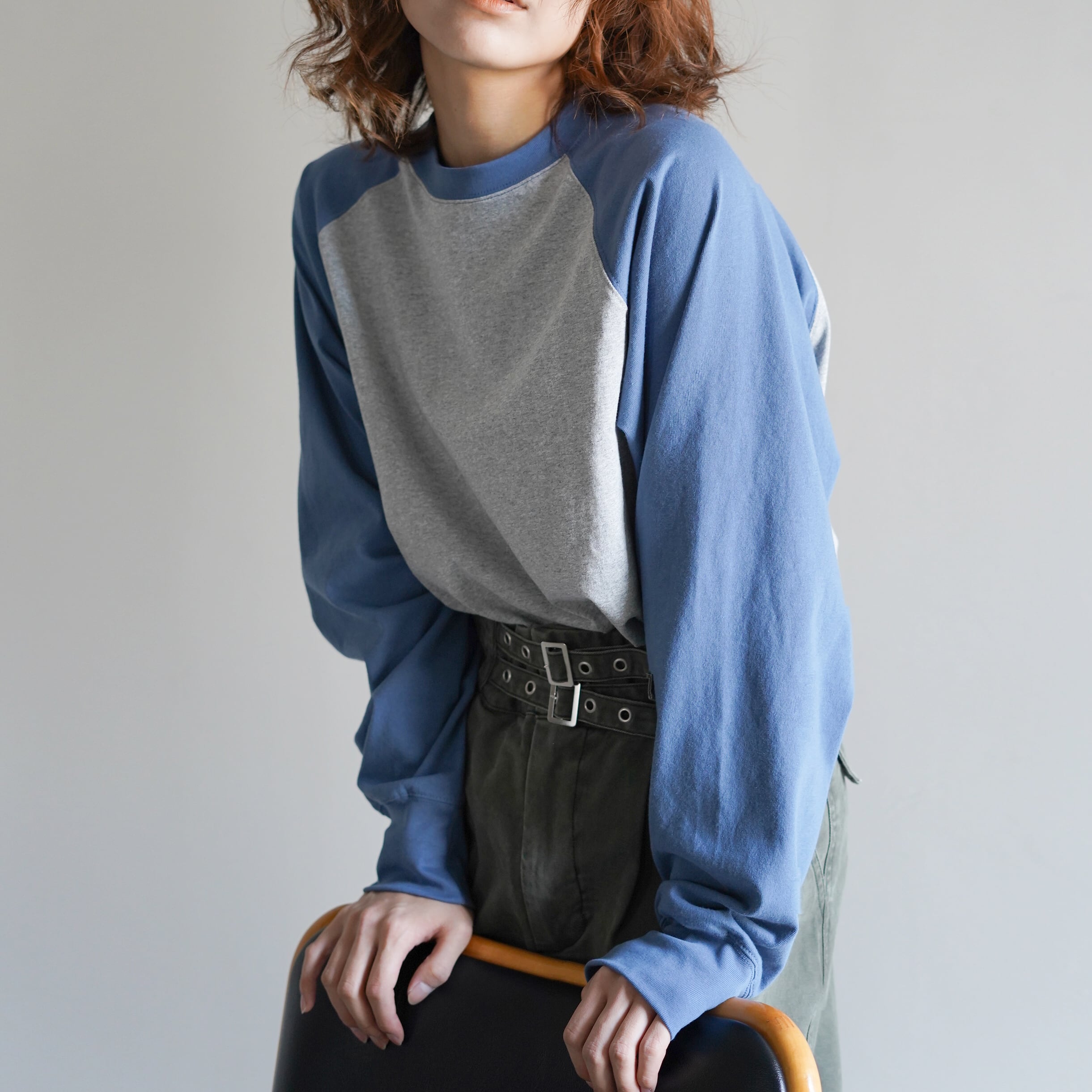 シンプルな合わせでも成立し、色で“違和感”を楽しめる、aleeらしいラグランTeeです。