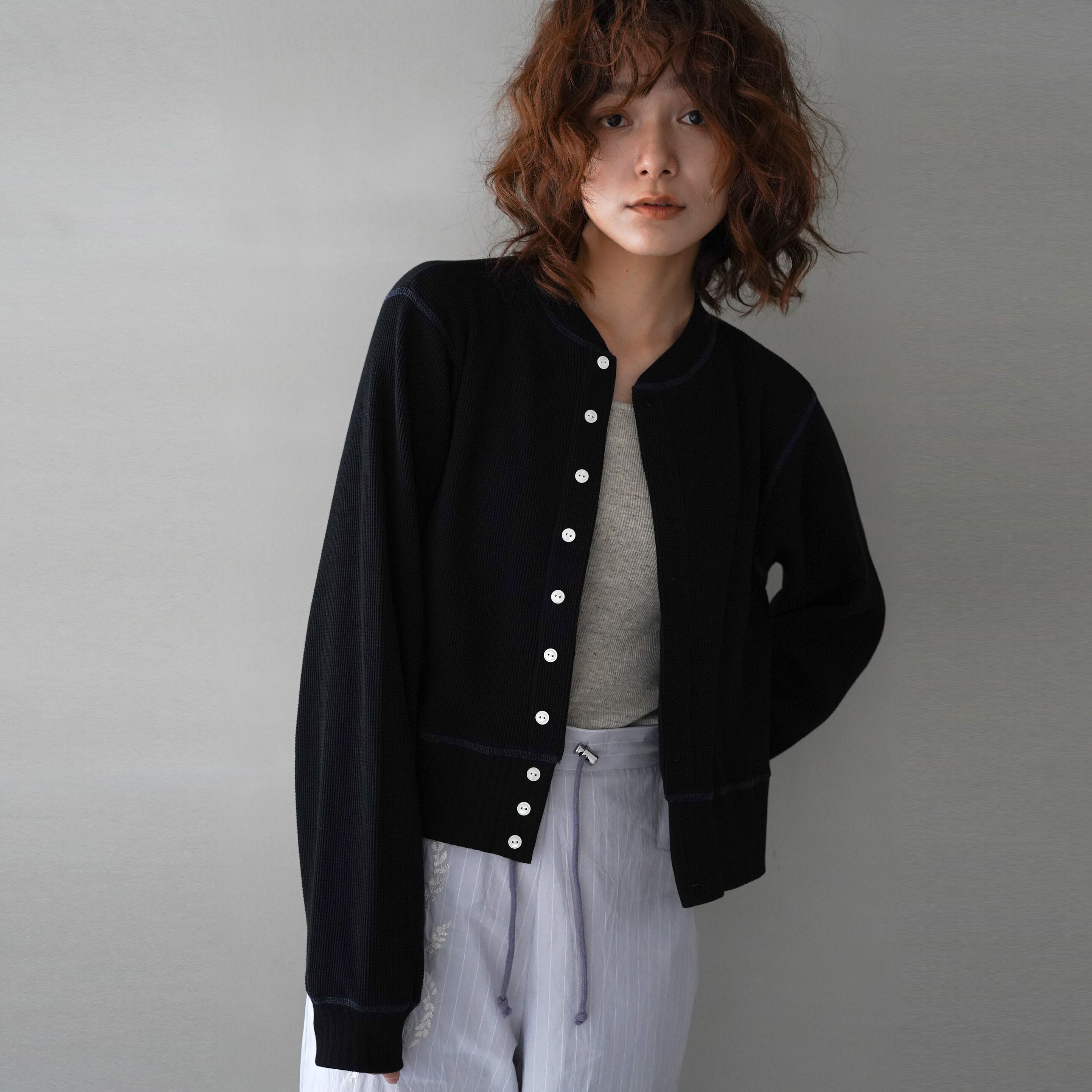 alee クロップド カーディガン|ワッフル素材