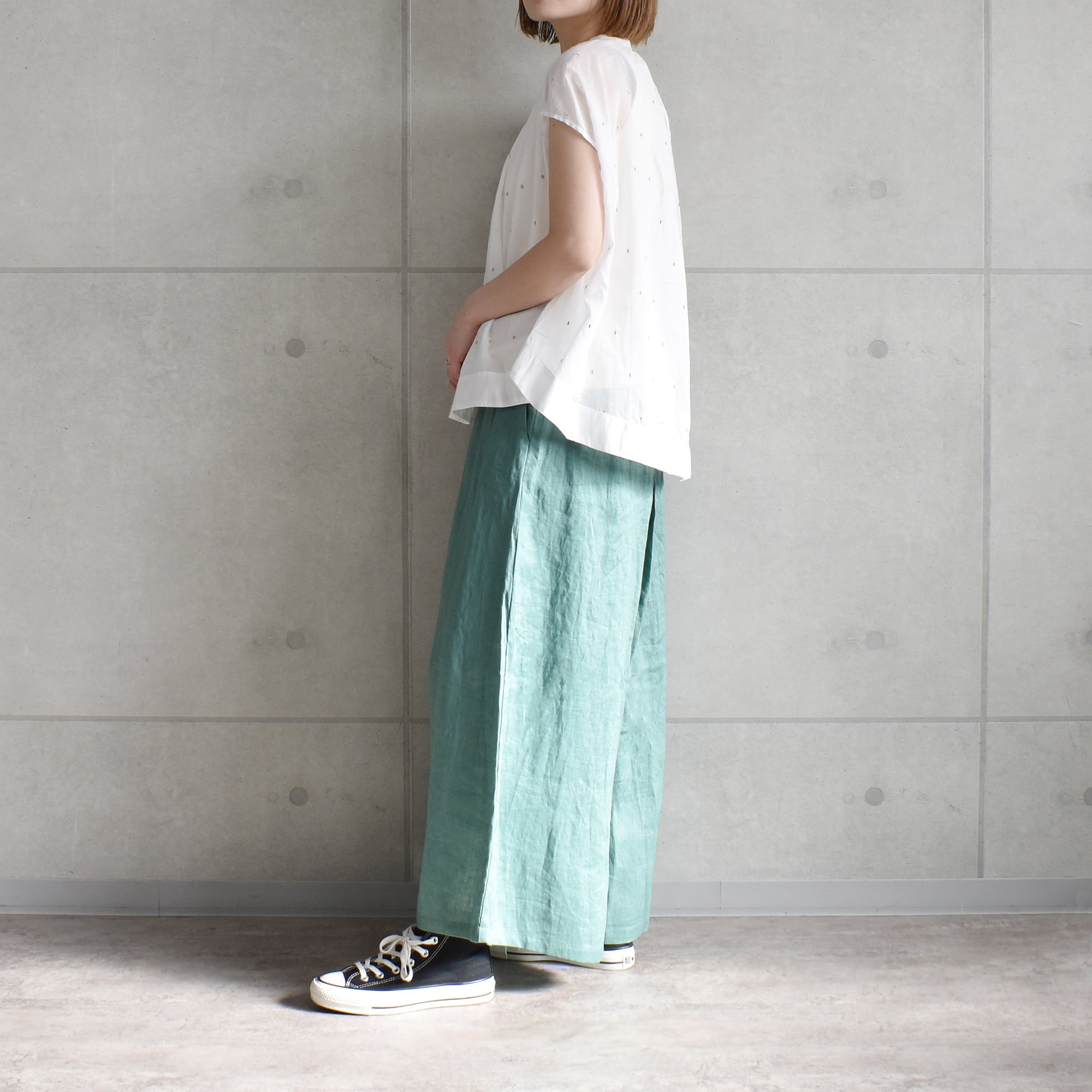 ふわっと肌離れの良い軽やかな素材感で、夏も快適に着用いただけます。