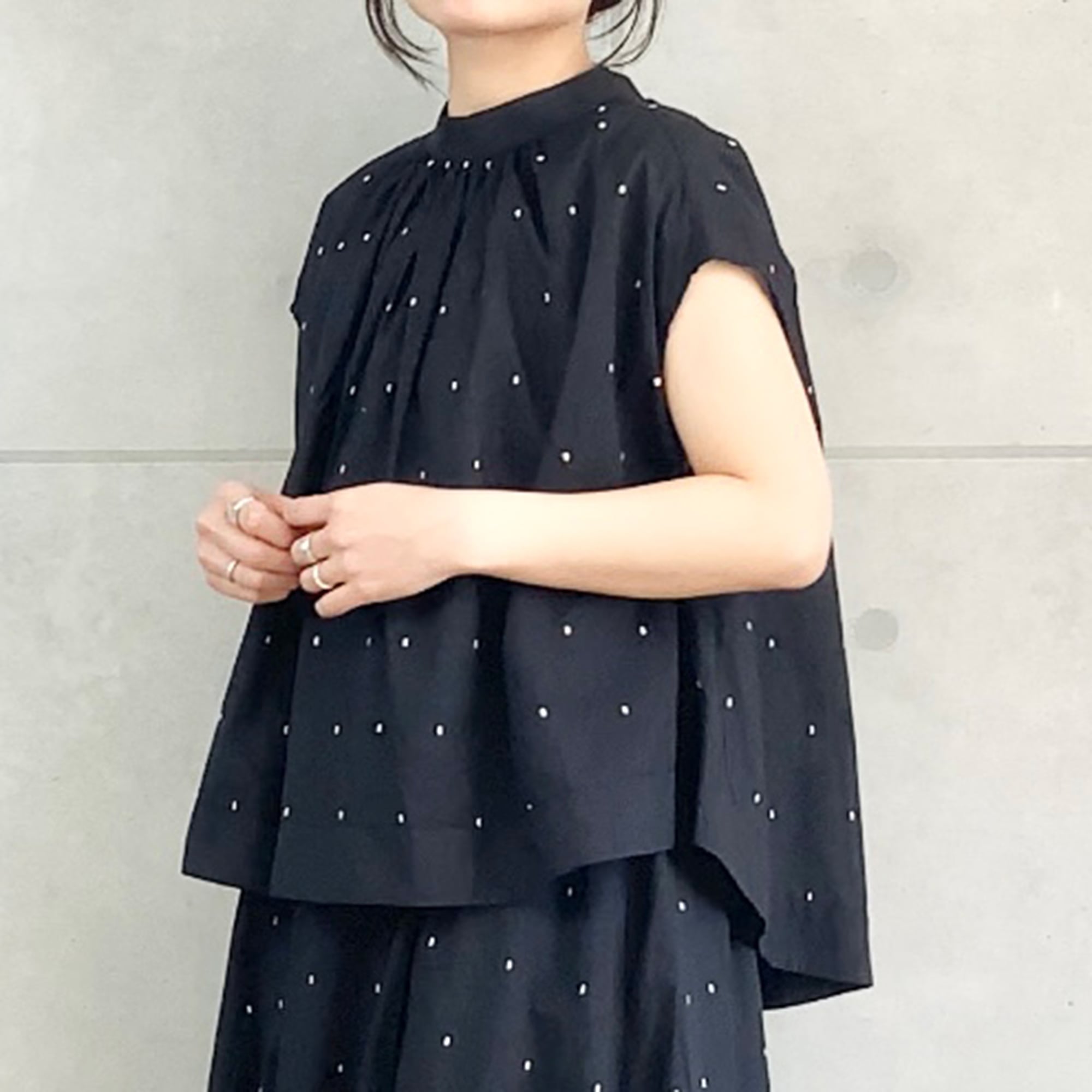 【予約商品】ドビードット刺繍 丸シルエット ブラウス