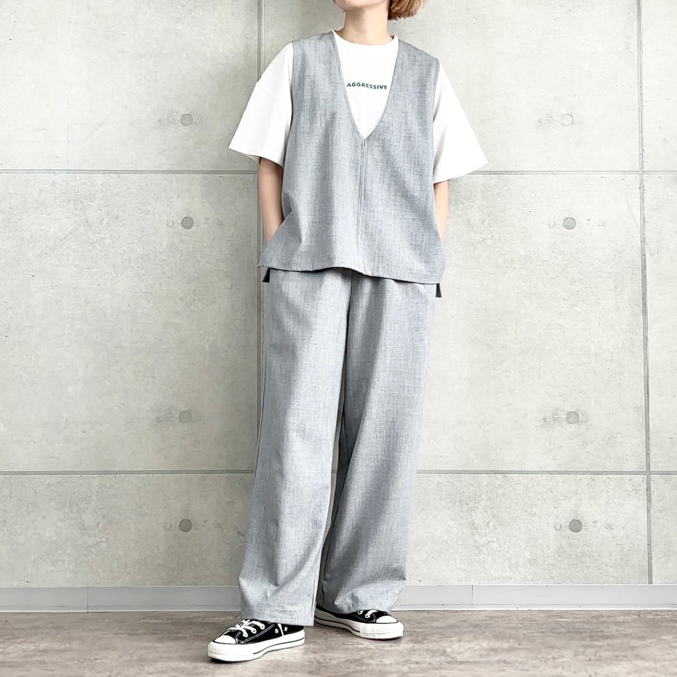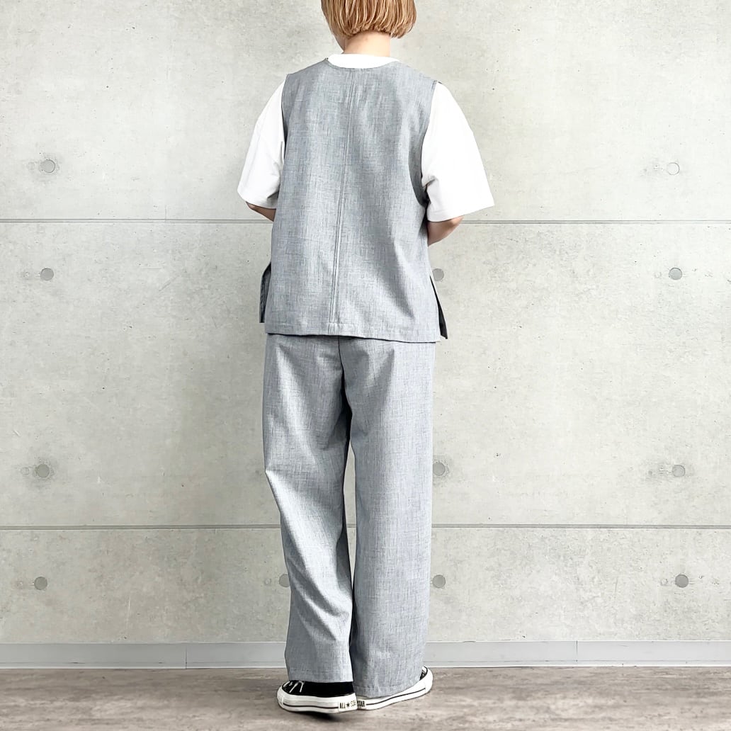 リネンライク素材のシンプルベスト。軽やかで着回し力の高い万能アイテム。