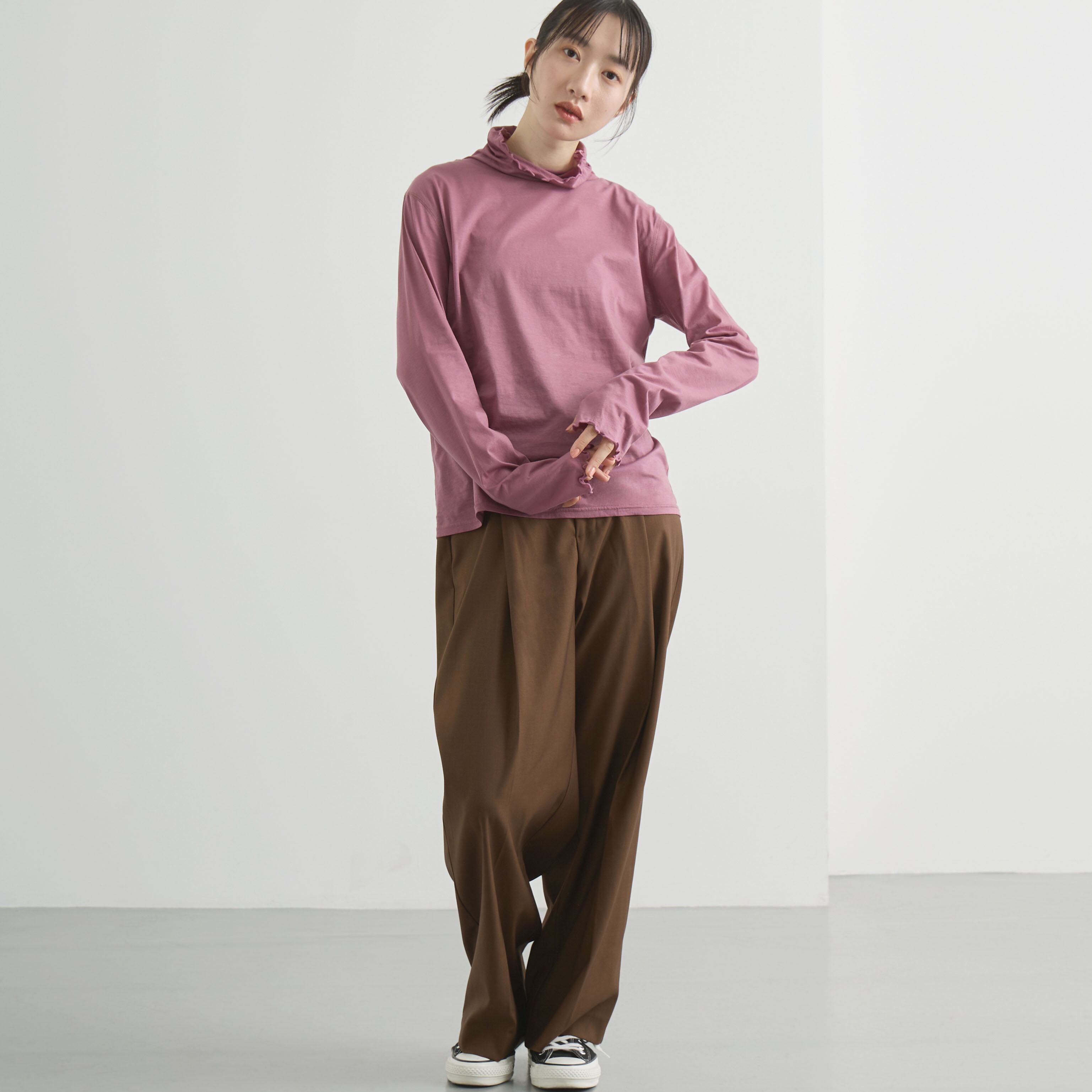 寒くなればスウェットやシャツとのレイヤードもおすすめ。