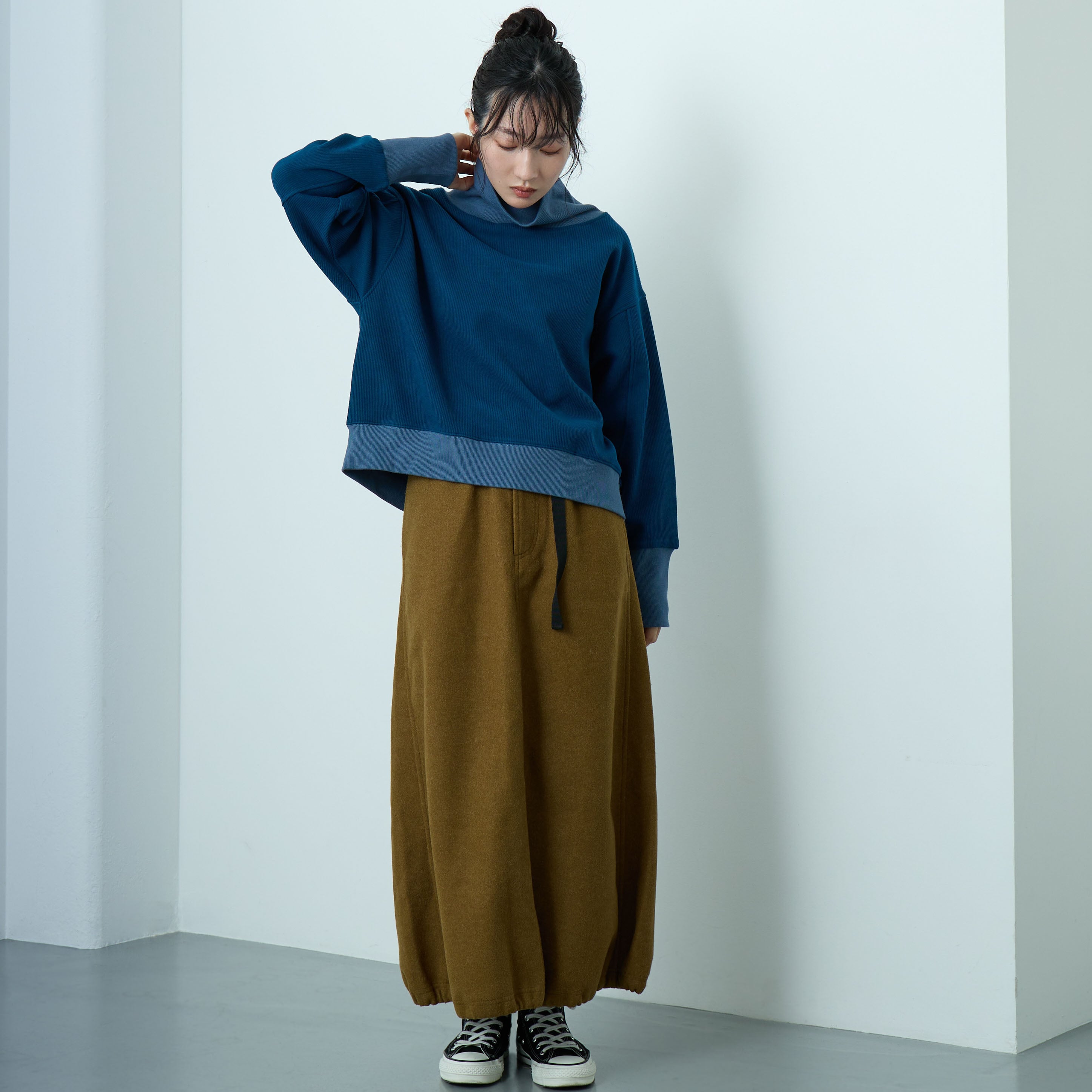裾のリブ上にボリュームを出した丸いシルエットに、