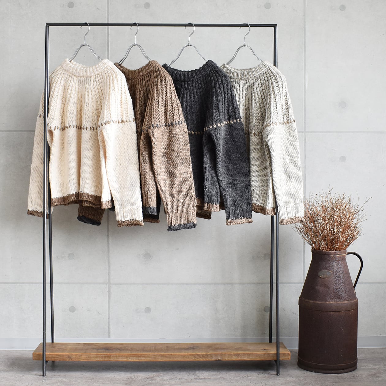 独特な凹凸が出るので空気を含んだ手編み感のある表情に。